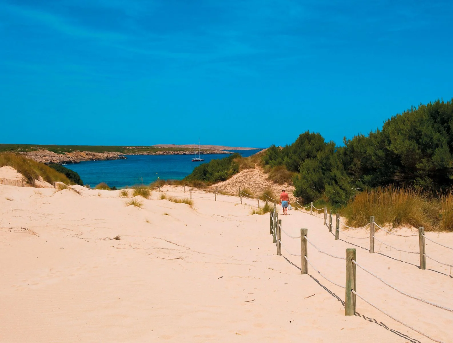a soli cento metri dalla meravigliosa spiaggia di sabbia bianca di Arenal de Son Saura, nota anche come Playa de Son Parc, raggiungibile tramite una comoda passerella in legno che attraversa
