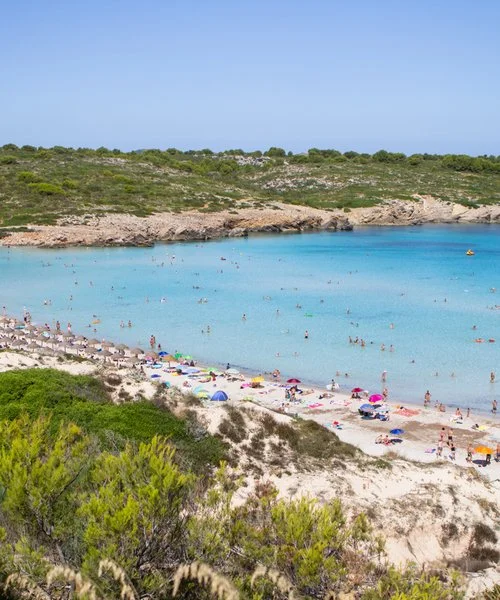 le spiagge più selvagge dell’isola, alcune delle quali raggiungibili attraverso spettacolari sentieri a picco sul mare, come la spiaggia di Arenal d’en Castell, a circa un km, quasi completamente chiusa da due promontori rocciosi che formano un’immensa piscina naturale a cielo aperto.