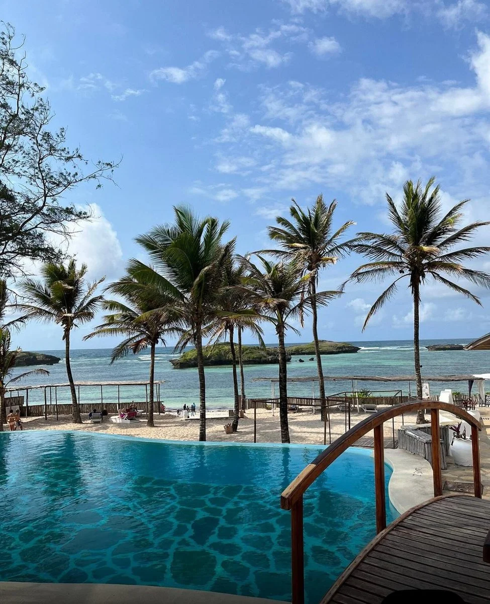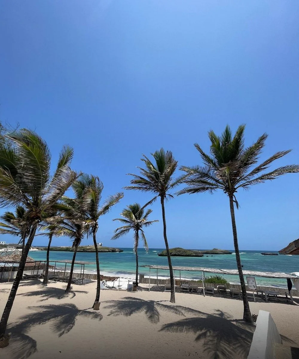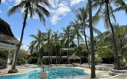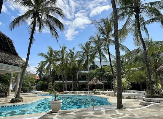 a 300 m, vicino alla zona Mapango, spiaggia di sabbia bianca attrezzata con zone d'ombra, lettini ad esaurimento e teli mare a disposizione degli ospiti. Anche questa zona della costa del Kenya è soggetta al fenomeno delle maree. A intervalli regolari di ogni sei ore si potrà assistere a uno spettacolo inaspettato in cui il mare si ritira per lasciar affiorare i fondali e poi tornare a sommergere la sabbia bianchissima.