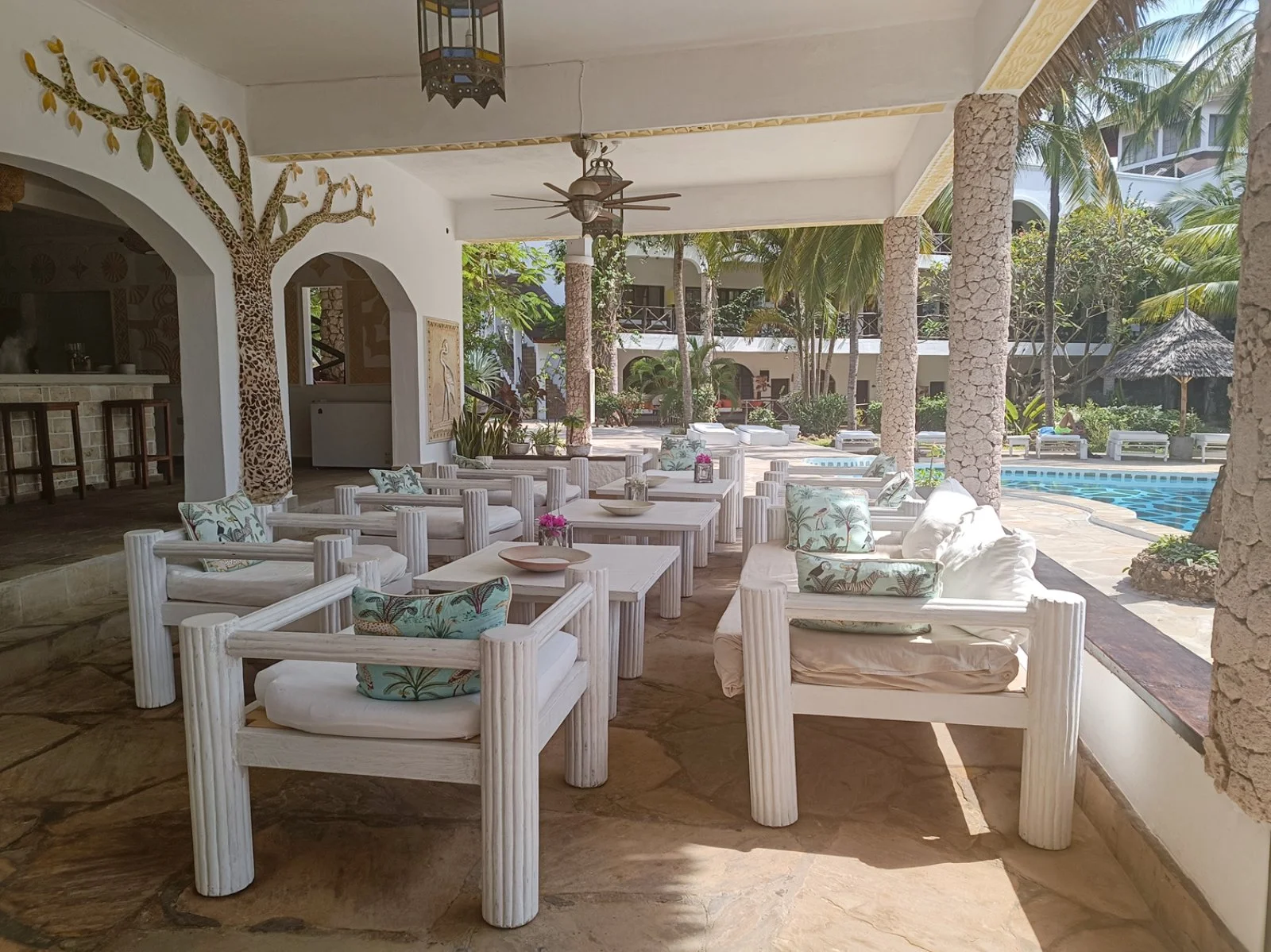 3 piscine, di cui 2 nell’area antistante la spiaggia, tutte con lettini e teli mare a disposizione e connessione wi-fi gratuita anche nelle aree comuni. A pagamento, lavanderia, servizio medico (su richiesta), boutique con artigianato locale, centro massaggi e possibilità di suggestiva cena privata à la carte a bordo piscina. Nell'aera Mapango, si organizzano attività di animazione e più volte a settimana serate di intrattenimento con artisti locali e cene a tema a bordo piscina. Su richiesta, l’hotel accetta animali di piccola taglia (fino a 5 kg).