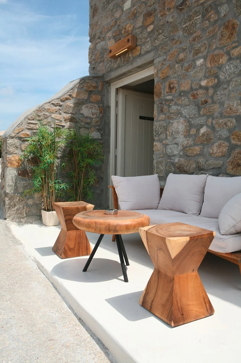 19 camere deluxe (22 m2) distribuite su 2 piani dotate di servizi privati, asciugacapelli, aria condizionata, TV satellitare, cassetta di sicurezza, minifrigo e terrazza o balcone vista mare. Connessione Wi-Fi gratuita in camera e nelle aree comuni. Sono disponibili, con supplemento, camere Aether deluxe (32-36 m2), junior suite Apollon Light (34-36 m2) che possono ospitare fino a 4 occupanti e suite superior Helios (51-59 m2) che possono ospitare fino a 5 occupanti, tutte con idromassaggio esterno.