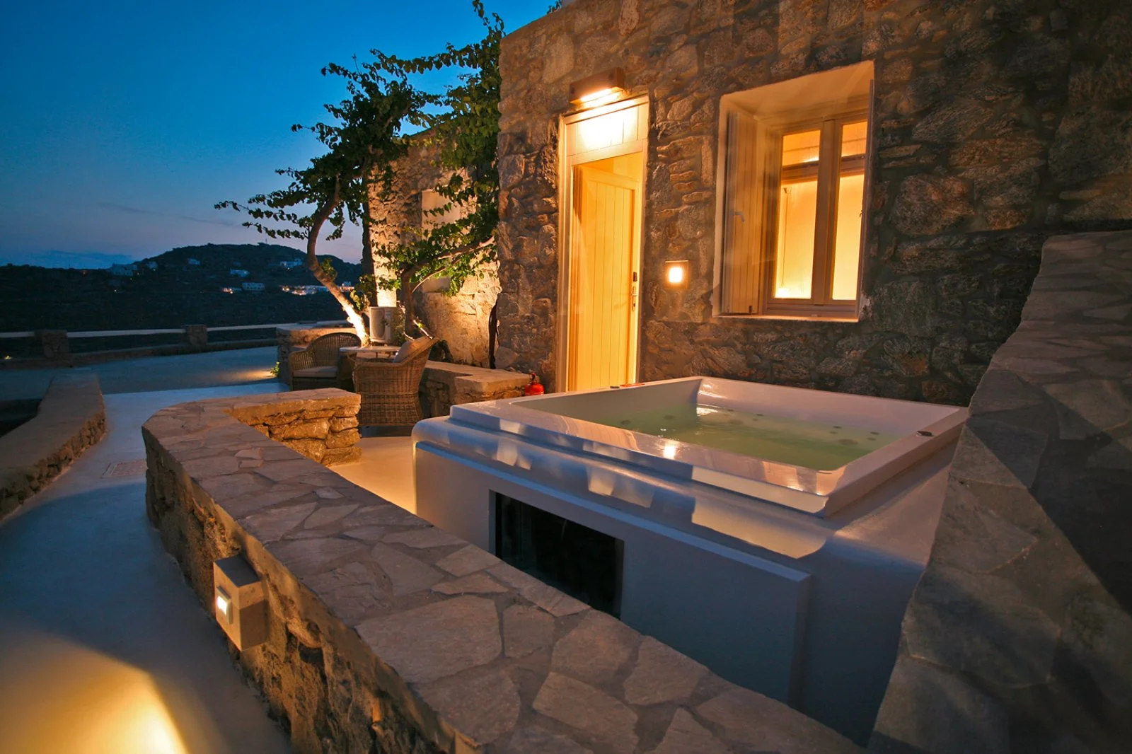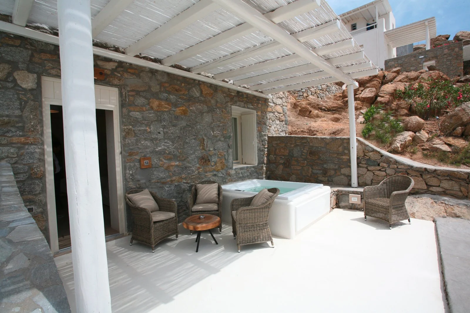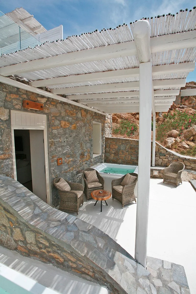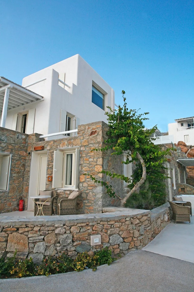 con grande cura per i dettagli e il design. La camera base è la Aegean deluxe, già di per sè molto confortevole, ma chi vuole davvero viziarsi non esiterà a scegliere le tipologie superiori con idromassaggio esterno e in grado di ospitare fino a 5 adulti. Anche la posizione è eccellente e perfetta per i veri clubber! Ad appena 450 metri da una delle due più splendide, chiassose e modaiole spiagge di tutto l’Egeo, è davvero il posto giusto per gruppi di amici alla ricerca di comfort abbinato al divertimento puro. Super Paradise non ha bisogno di presentazioni, ma per chi non la conoscesse così bene è una bellissima baia di sabbia chiara non troppo lunga ma profonda, incastonata tra brulle collinette e con acque cristalline, frequentata da nudisti e non, vip e ragazzi da mezzo mondo alla ricerca di divertimento e trasgressione. Il mattino scorre tranquillo e pigro ed è il momento ideale per godersi la tintarella con poca folla, mentre da metà pomeriggio si scatena la festa. I suoi beach party sono davvero indimenticabili, innaffiati da fiumi di champagne e con folle di giovani che ballano musica a tutto volume dal tramonto a tarda notte! Se preferite un locale più chic senza rinunciare alla splendida vista su Super Paradise, Eden vi segnala il Jackie O’ Beach, leggermente rialzato a lato della baia, con piscina, idromassaggio e animato spesso da intrattenimento con drag queen. Sotto ogni punto di vista questa spiaggia è dunque un must!