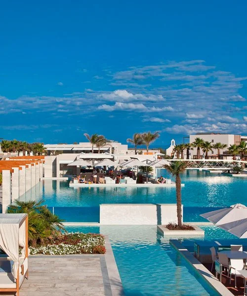 Elegante e raccolto, affacciato sulla bella e lunga baia di Kolymbari nell’area di Chania; è stato costruito con un’architettura che ricorda le antiche case minoiche negli esterni e con un design contemporaneo negli interni, pur sempre con dettagli che richiamano il passato. Particolarmente indicato per le famiglie, sia per le camere spaziose ma anche per le attività internazionali di miniclub, dedicate ai più piccoli. La sua ampia piscina a sfioro con bordo trasparente, una ricca proposta culinaria e una moderna e suggestiva SPA sono solo alcuni degli elementi da cui amerai farti viziare.