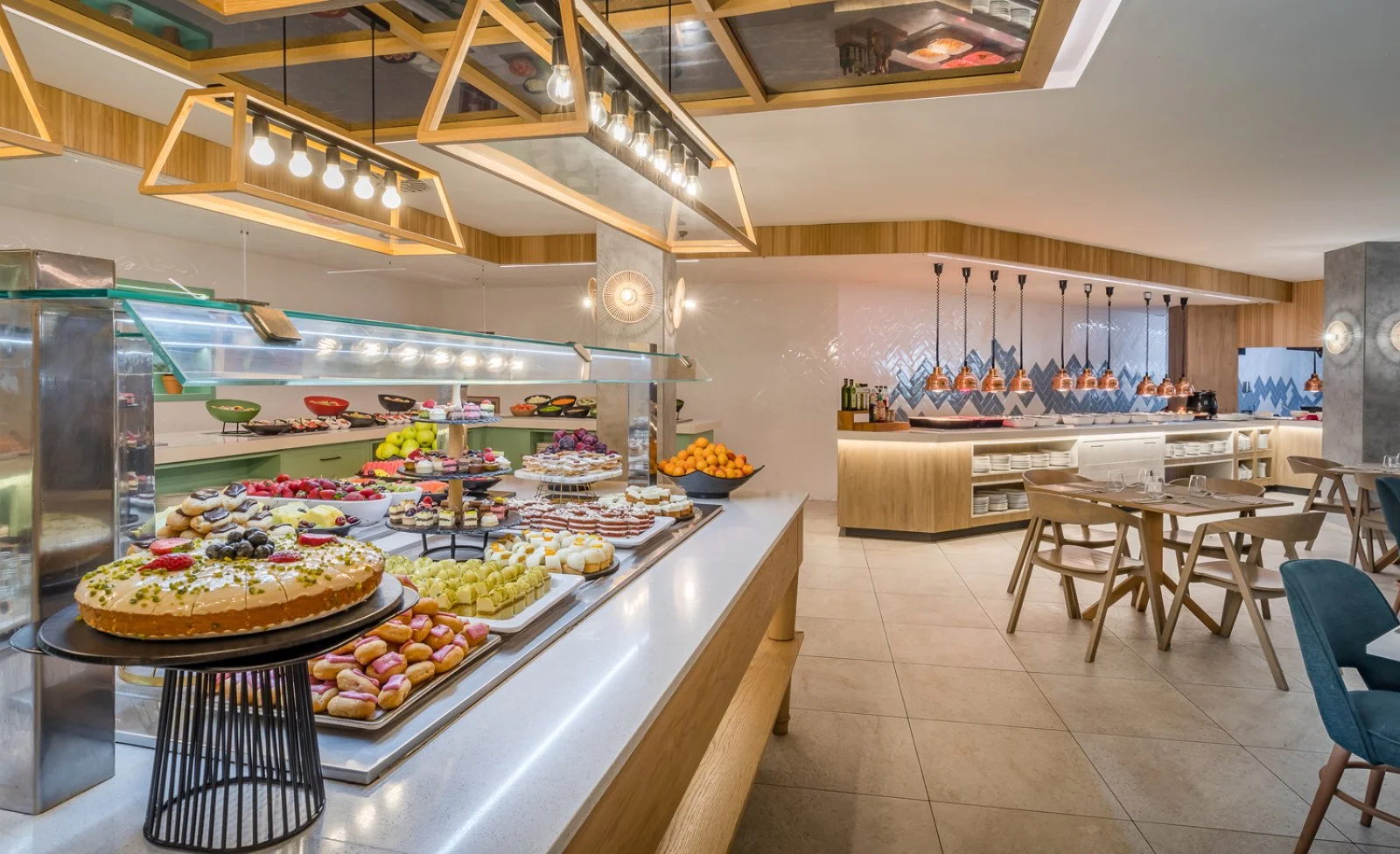 Il ristorante principale offre servizio a buffet con cucina mediterranea e internazionale, postazione per show cooking e serate a tema. A pagamento: un ristorante à la carte, due bar e un pool bar presso i quali gustare snack, cocktail e bevande.