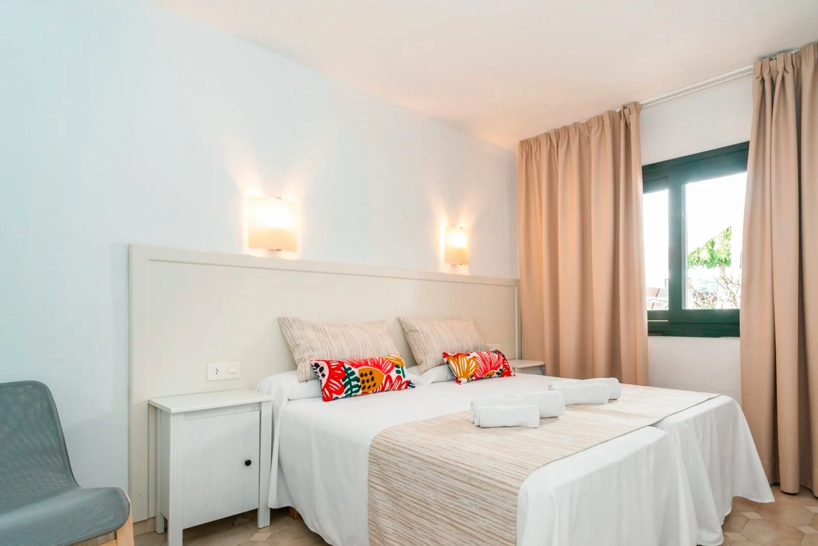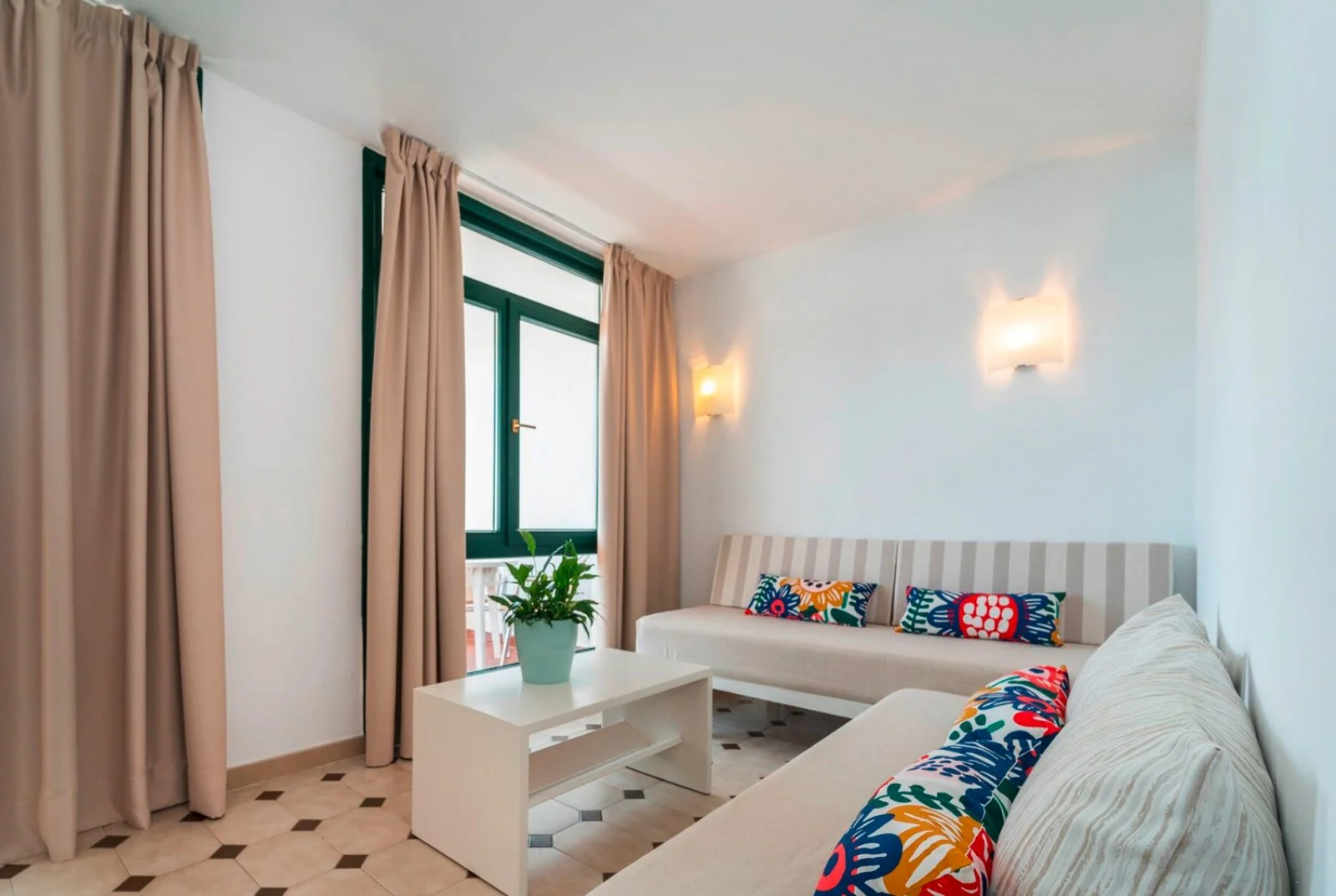 La struttura dispone di 142 appartamenti vista mare di 47 m2 circa (massimo 3 adulti + 1 bambino) e di 54 suite con spettacolare vista mare (max 3 adulti). Gli appartamenti dedicati ai clienti Alpitour, tutti rinnovati fatta eccezione per l'angolo cottura, sono composti da camera da letto, soggiorno con divano letto, angolo cottura attrezzato, servizi privati, balcone, asciugacapelli, telefono, TV satellitare, connessione Wi-Fi, aria condizionata e cassetta di sicurezza. Le suite, tutte rinnovate, dispongono di un'esclusiva vista mare panoramica, di un'ampia terrazza arredata e di camera da letto con letto king size. Non dispongono di cucina. In entrambe le tipologie il servizio di pulizia viene effettuato a giorni alterni.