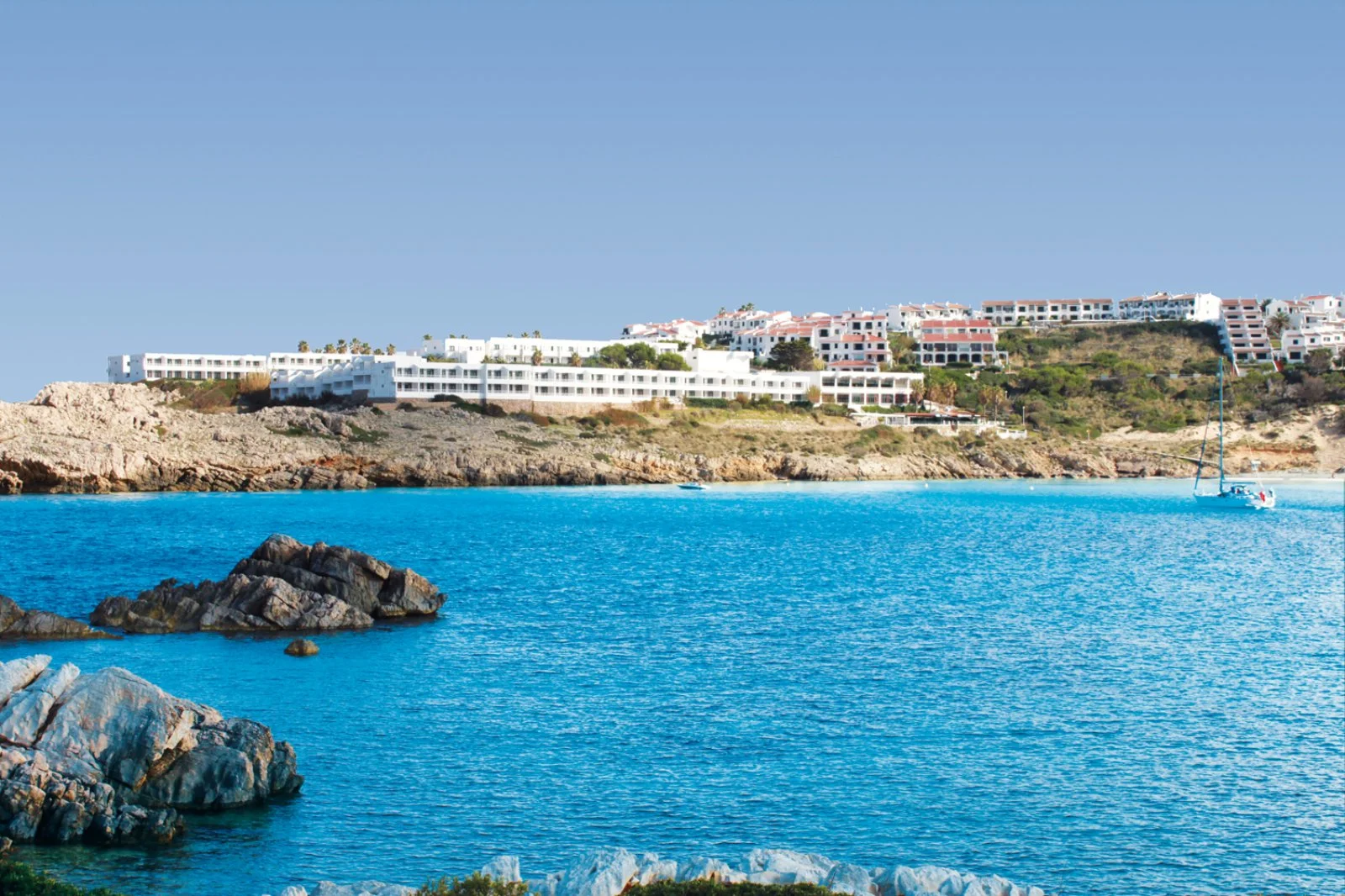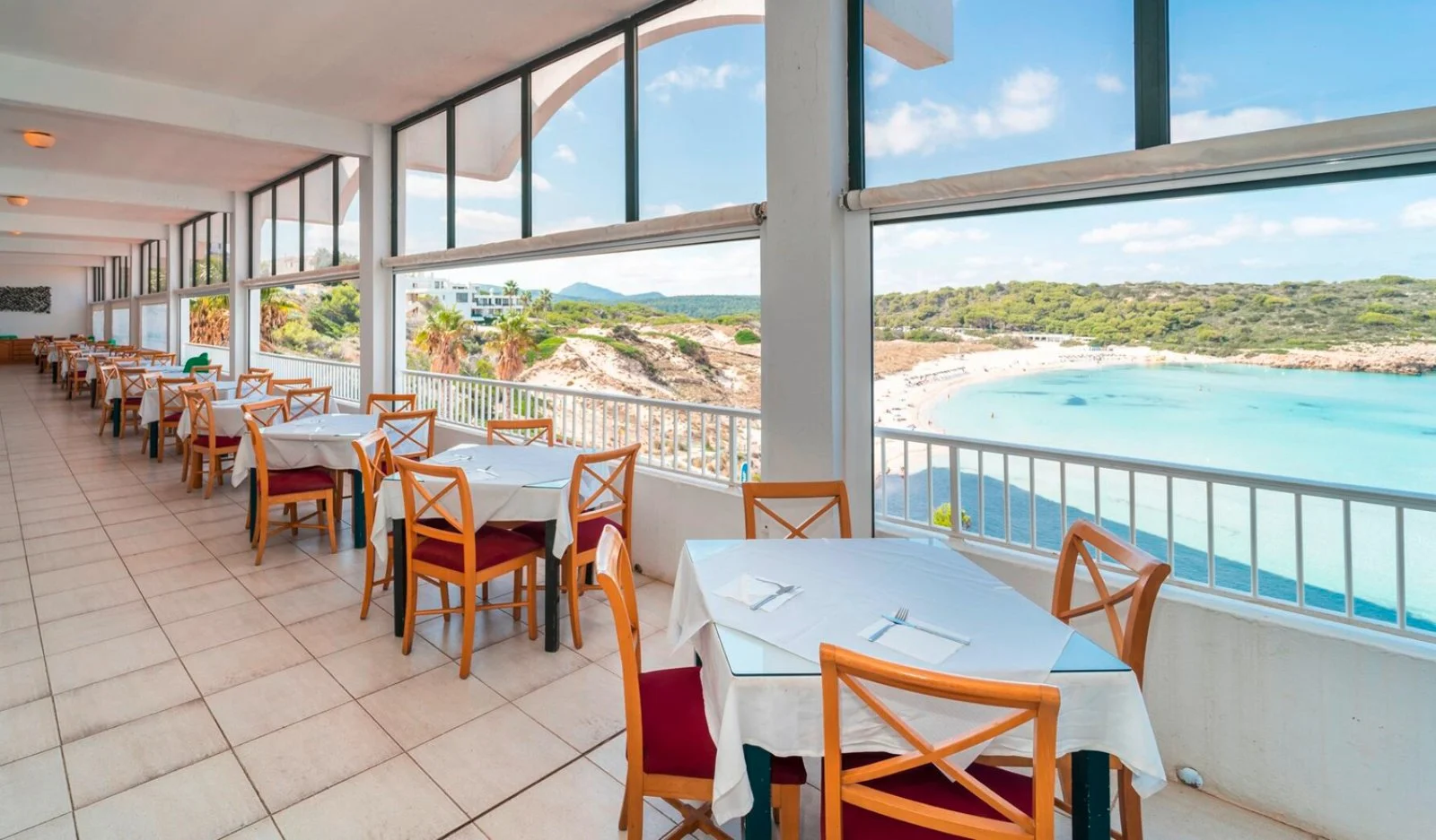 Sulla costa nord dell’isola, in località Son Parc, a 30 km dall’aeroporto di Mahon e 7 km dal caratteristico borgo di pescatori di Fornells. È un complesso semplice, adatto a una clientela che desidera la sistemazione in appartamento ma con la comodità del trattamento di mezza pensione o pensione completa. Oltre al corpo centrale, comprende una serie di bassi edifici dove si trovano le unità abitative.