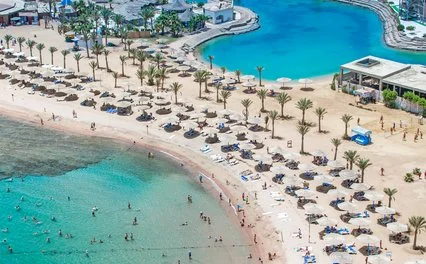 Hurghada, direttamente sulla spiaggia, a 10 km dall’aeroporto e dalla Promenade, 17 da Downtown.