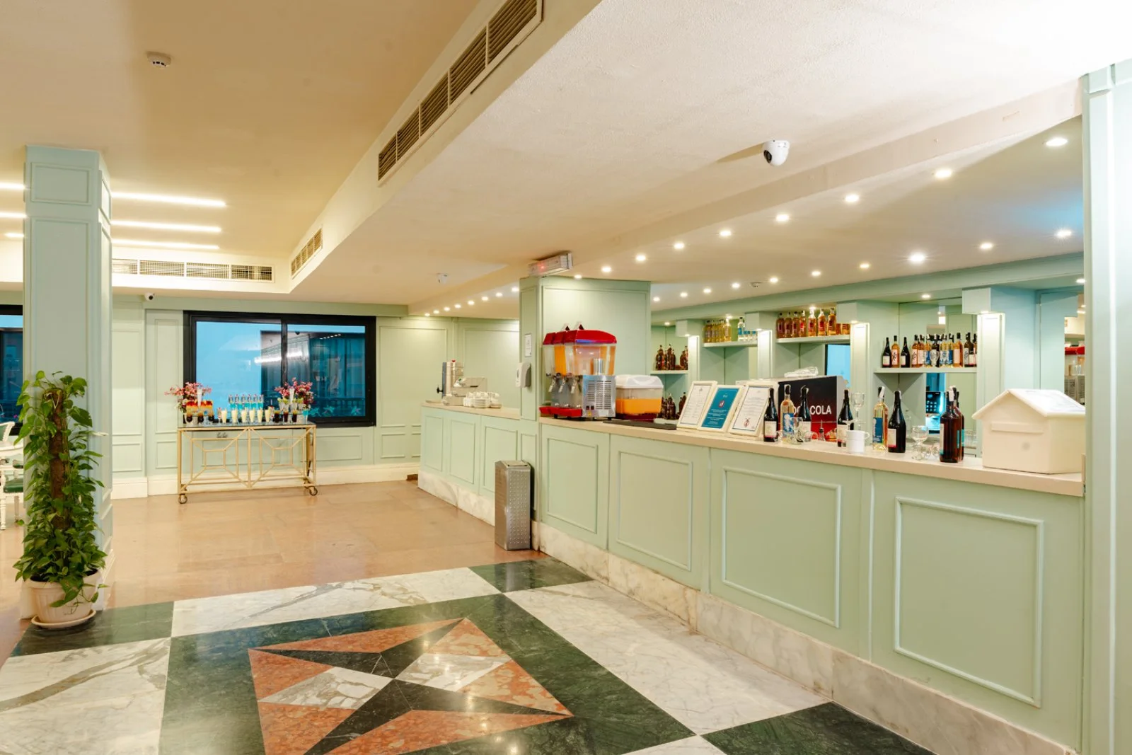 - consumo di bevande analcoliche, soft drink, acqua, te e caffè (h6-24), tutti serviti in bicchiere, presso i vari punti bar secondo l’orario di ciascuno