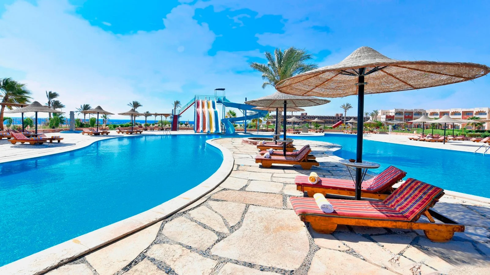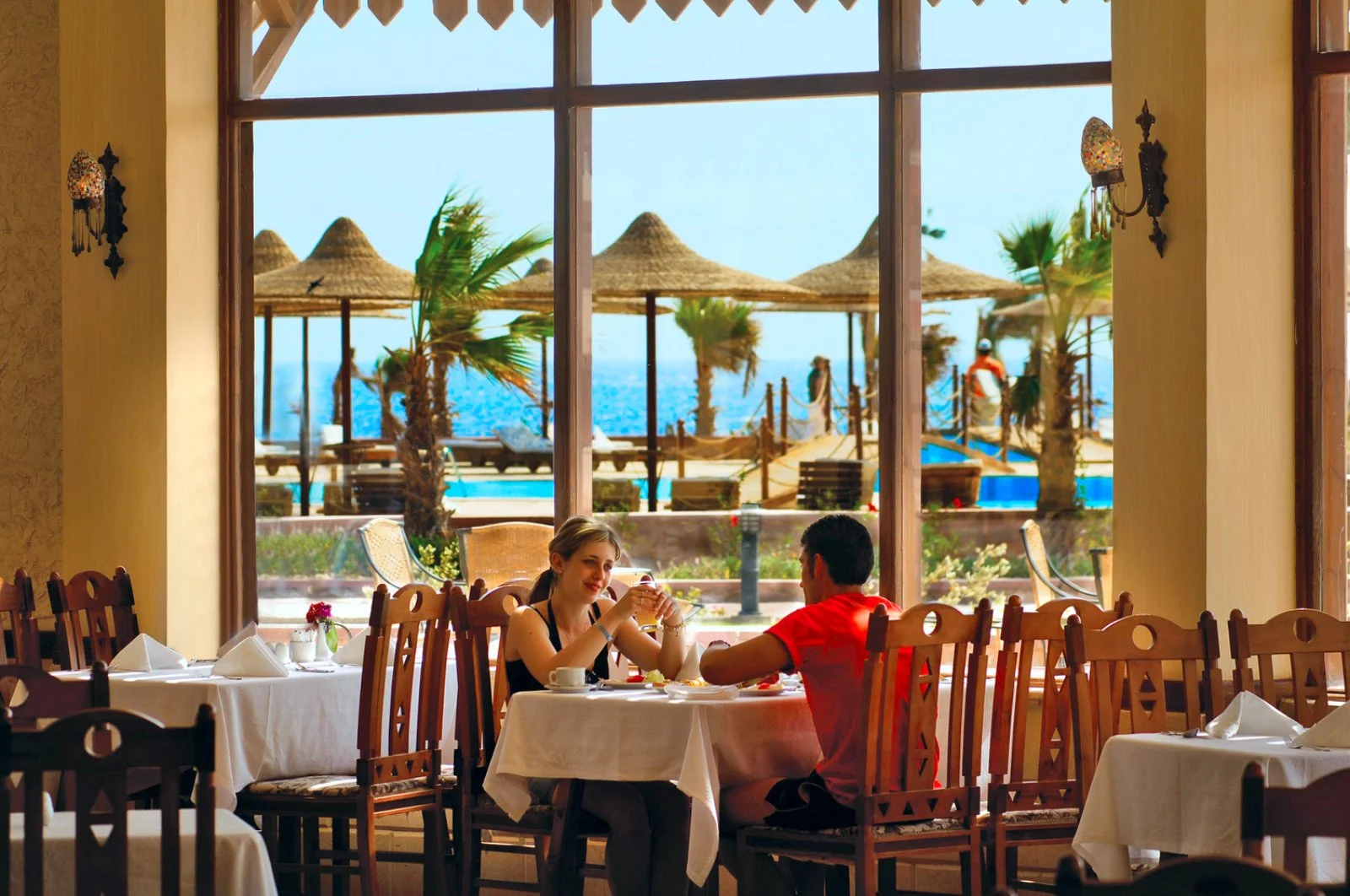 in caratteristico stile nubiano ed è tutto raccolto intorno a una grande zona piscina. Sono disponibili camere con una bellissima vista mare.