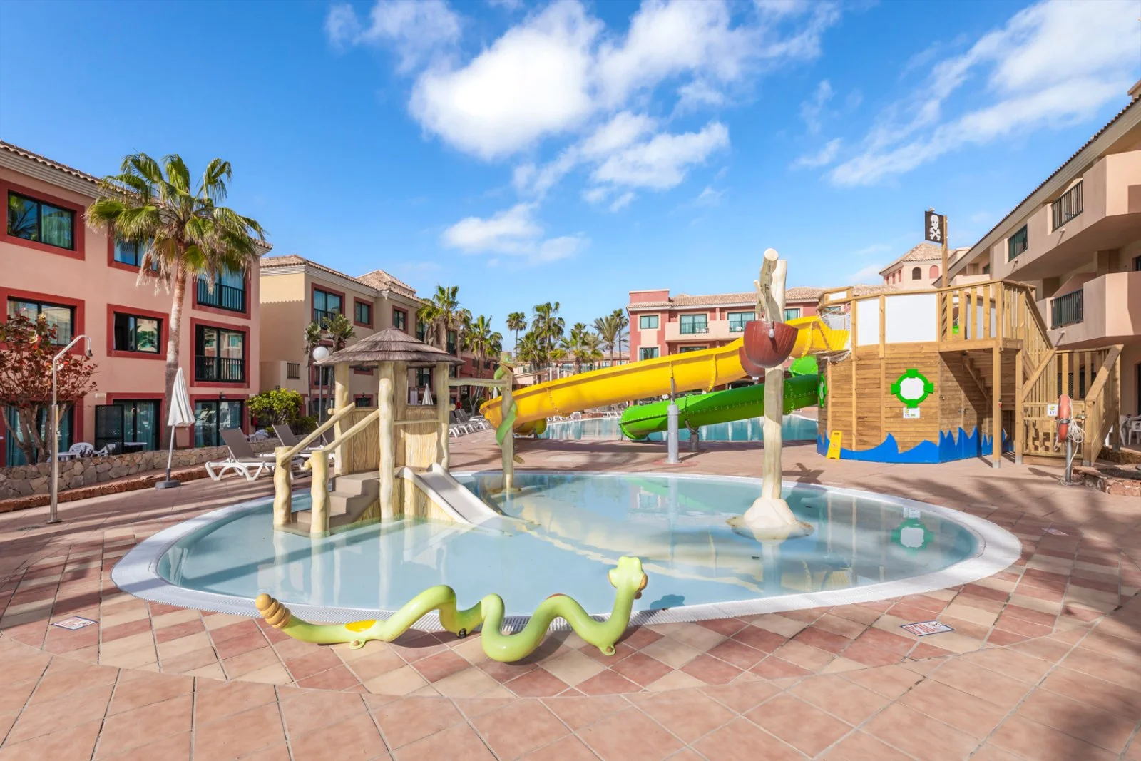 6 piscine, di cui 2 per bambini, tutte con lettini e ombrelloni a disposizione (teli mare disponibili con deposito e cambio a pagamento). Parcheggio pubblico, area giochi per bambini, terrazza solarium e connessione wi-fi gratuita anche nelle aree comuni. A pagamento, biliardo, lavanderia, centro Spa con massaggi, idromassaggio e sauna. Su richiesta, a pagamento, servizio medico. L'hotel organizza giochi e attività durante il giorno e spettacoli serali.
