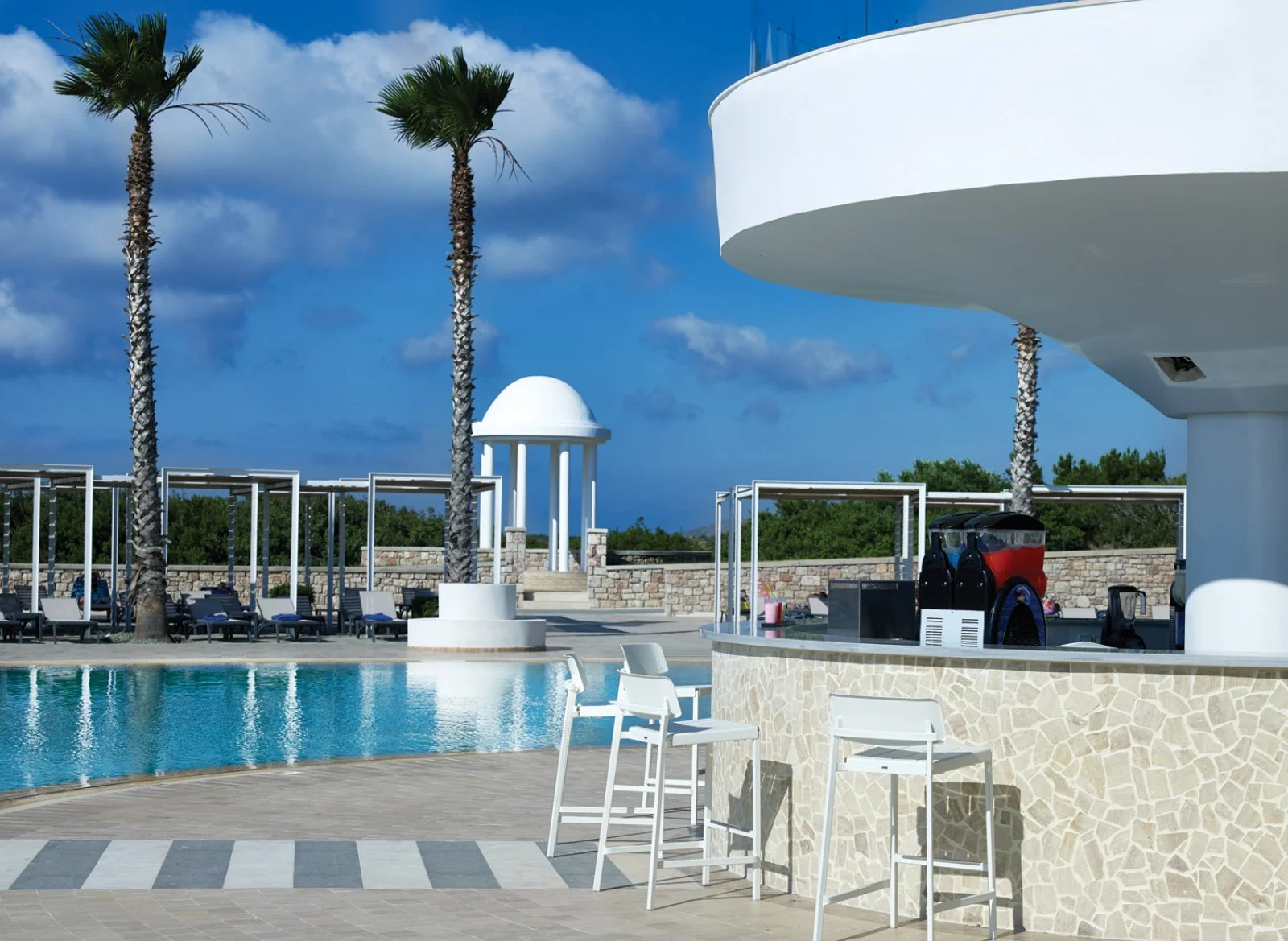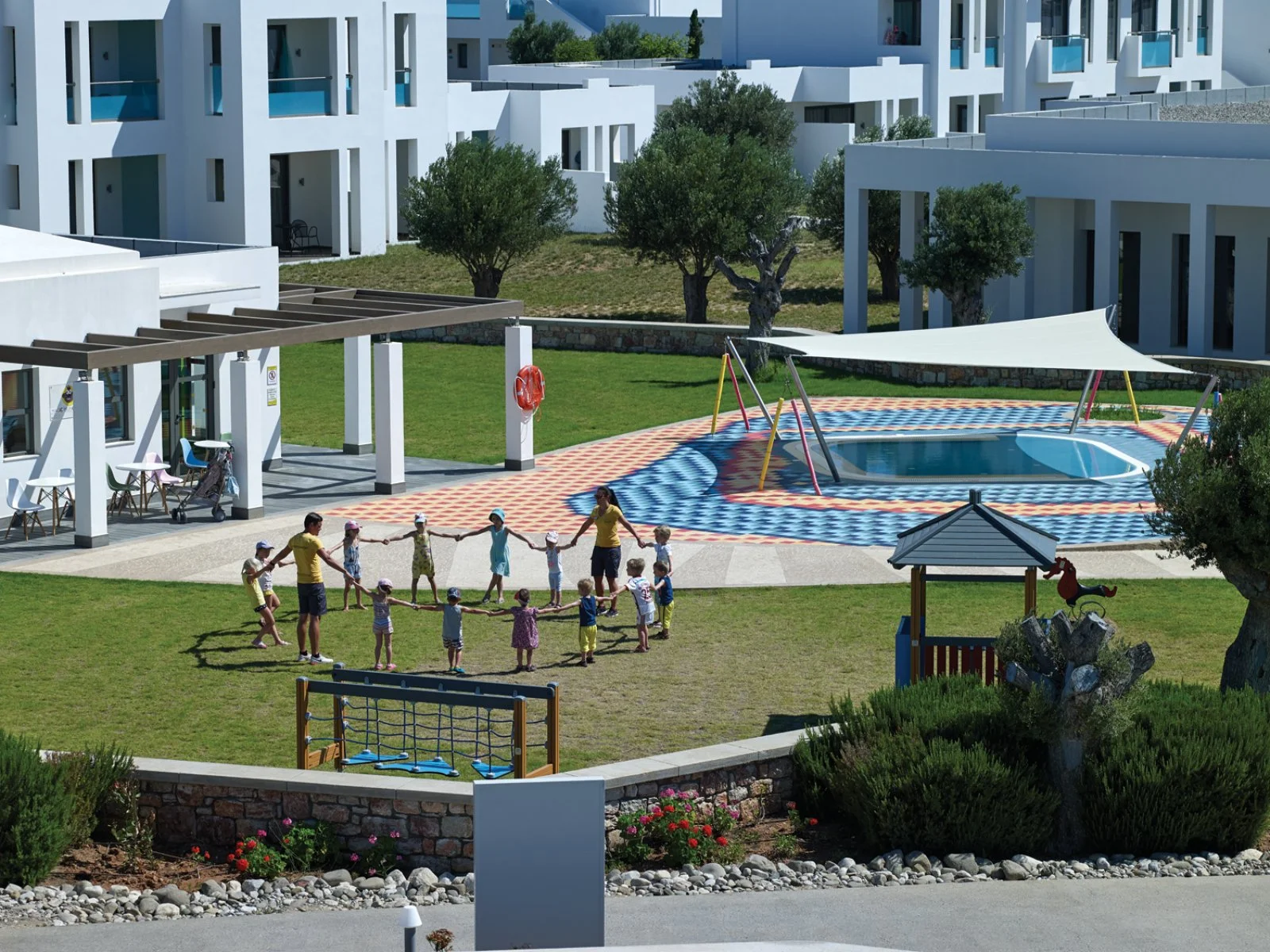 Le sistemazioni includono: doppie e triple vista giardino (30-36 m2, rispettivamente massima occupazione 2 e 3 adulti), family vista giardino (42 m2, massima occupazione 3 adulti e 2 bambini) composte da due ambienti separati da una porta scorrevole, one bedroom suite vista giardino (50 m2, massima occupazione 4 adulti) composte da una camera da letto matrimoniale e un soggiorno con due divani letto singoli. Disponibili anche doppie swim-up vista mare (30m2, massima occupazione 2 adulti), one bedroom suite sharing pool vista giardino (55 m2, massima occupazione 4 adulti) e one bedroom suite swim-up vista mare (55 m2, massima occupazione 4 adulti). Le tipologie di camere sharing pool e swim-up dispongono inoltre di accappatoio e ciabattine (per adulti).