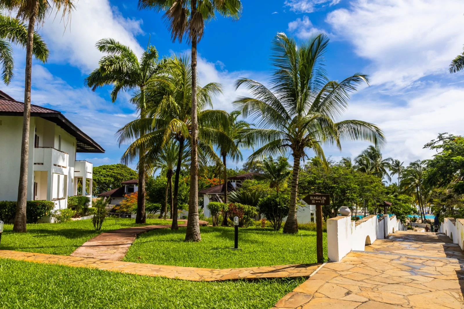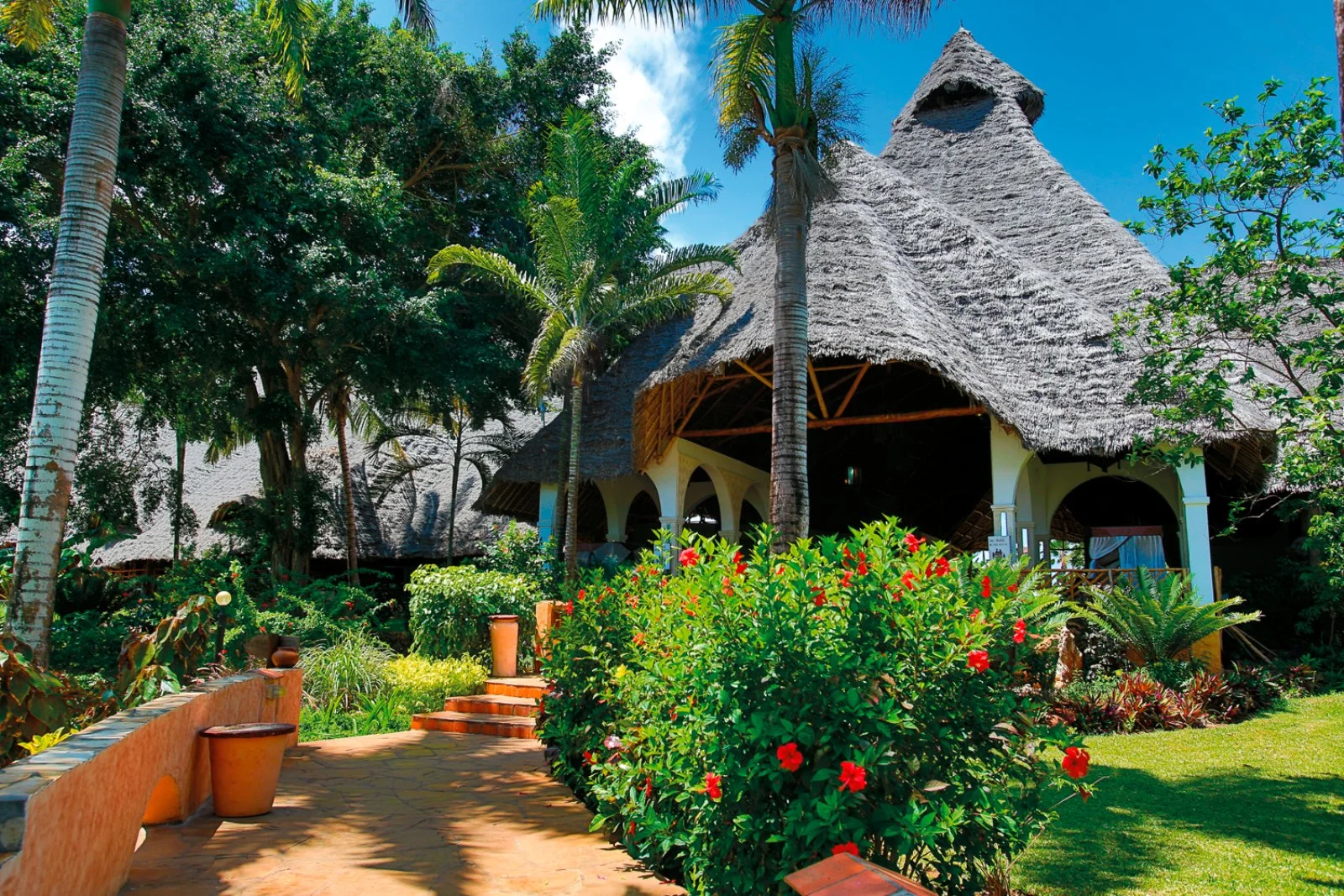 Le 200 camere del complesso dispongono di servizi privati con doccia, asciugacapelli, minifrigo, aria condizionata e terrazza. Le camere classic (massimo 2 adulti e 1 infant) offrono un ambiente curato nei dettagli in perfetto equilibrio tra eleganza moderna e suggestioni etniche. Si trovano vicine al giardino botanico. Le camere comfort (di 30 m2 circa; massimo 3 adulti) sono arredate in tipico stile zanzibarino. Sono inoltre disponibili alcune comfort family room (massimo 3 adulti e 1 bambino) e, su richiesta, camere comunicanti, che prevedono un'occupazione di 5 persone (massimo 4 adulti, 1 bambino e 1 infant). Il villaggio ospita clientela internazionale.