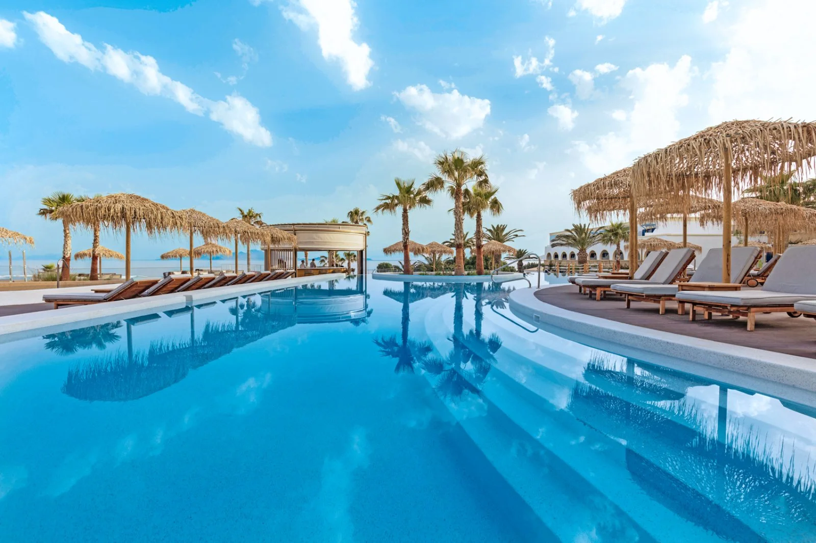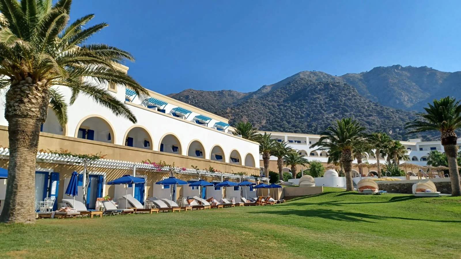 Ottima l’offerta di attività sportive: area fitness all’aperto con vista mozzafiato sul mare, 3 campi da padel (illuminazione inclusa, previa prenotazione), beach volley, campo da calcetto 5x5, ping-pong, bocce, freccette, canoa e pedalò oltre a 2 campi da tennis presso il Mitsis Selection Blue Domes situato a circa 50 m (illuminazione inclusa, previa prenotazione). Miniclub con una colorata area giochi esterna con vista panoramica sul mare. A pagamento: windsurf (richiesto brevetto), centro sport nautici di gestione esterna con sci d’acqua, parapendio, banana boat e moto d’acqua, noleggio biciclette, biliardo, sala giochi; inoltre, nelle vicinanze, equitazione (a circa 4 km) e pista da go-kart (a 400 m). Presso il Mitsis Selection Blue Domes è presente un centro SPA con piscina coperta, massaggi, trattamenti estetici e parrucchiere.