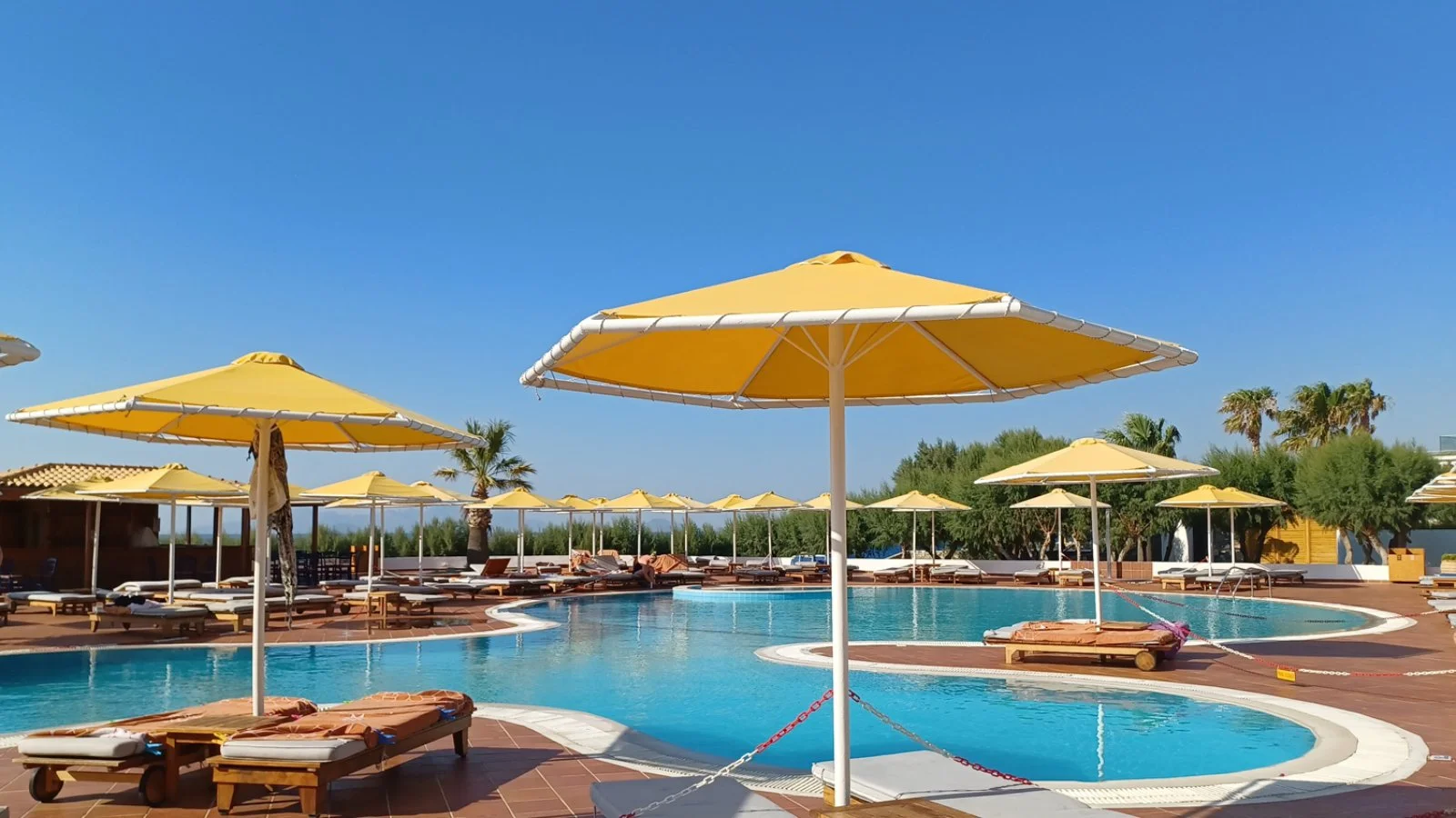 Il resort dispone di 455 camere in totale, tutte dotate di balcone o terrazza, aria condizionata con controllo individuale, TV satellitare con ricezione di alcuni canali italiani, telefono, minibar con una bottiglia di vino omaggio all’arrivo e rifornimento giornaliero di acqua, bibite e birra, set per tè e caffè, accesso internet Wi-Fi, cassetta di sicurezza, servizi privati con vasca, asciugacapelli e ciabattine.