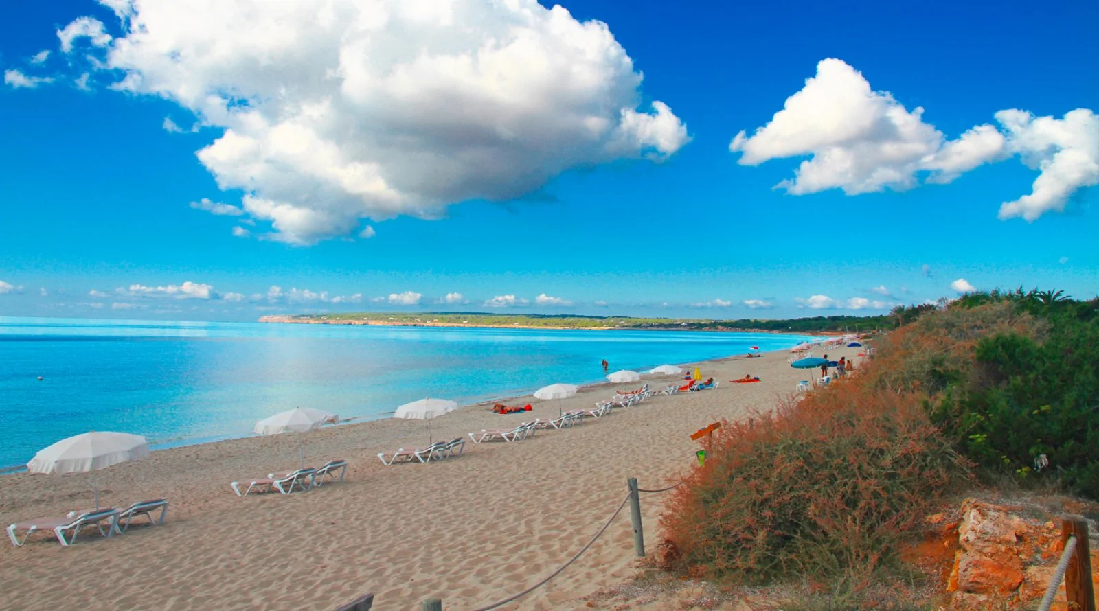 trovarsi ad appena a 300 metri dalla meravigliosa spiaggia di Mitjorn che contende a Illetes il primato per la spiaggia più bella dell’isola. Si tratta di un lungo litorale di quasi 4 km, con fondali lievemente digradanti, punteggiato da