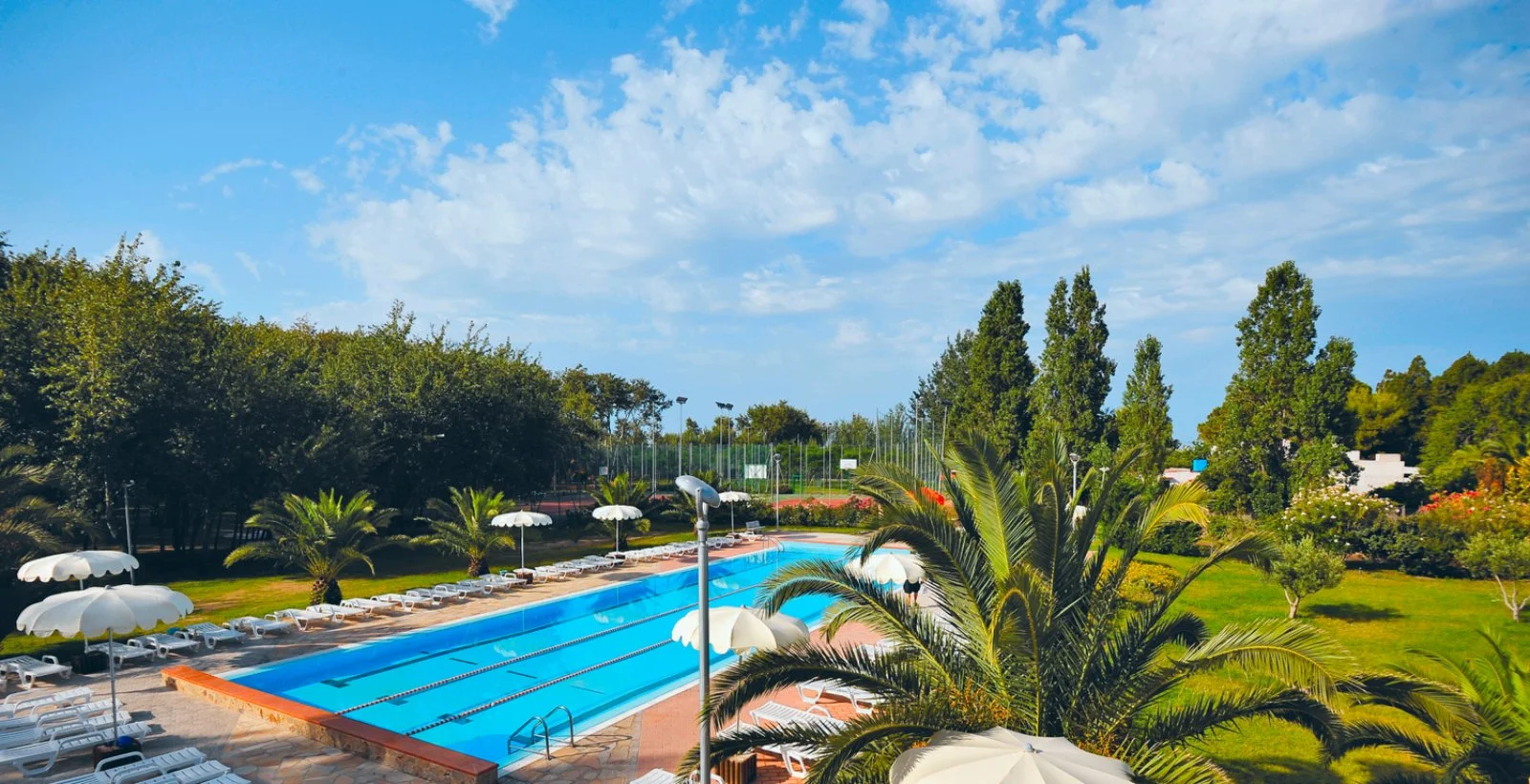 Area fitness, ginnastica di gruppo, campi polivalenti tennis/calcetto, beach volley, bocce, tiro con l’arco e tiro a segno, ping-pong, padel. Lezioni collettive di alcune attività sportive da inizio stagione estiva al 20/9. Uso gratuito di paddle surf, big SUP, canoe, vela e windsurf. Animazione diurna e spettacoli serali. A pagamento: lezioni individuali degli sport previsti, area SPA, mini maneggio e attività nautiche.