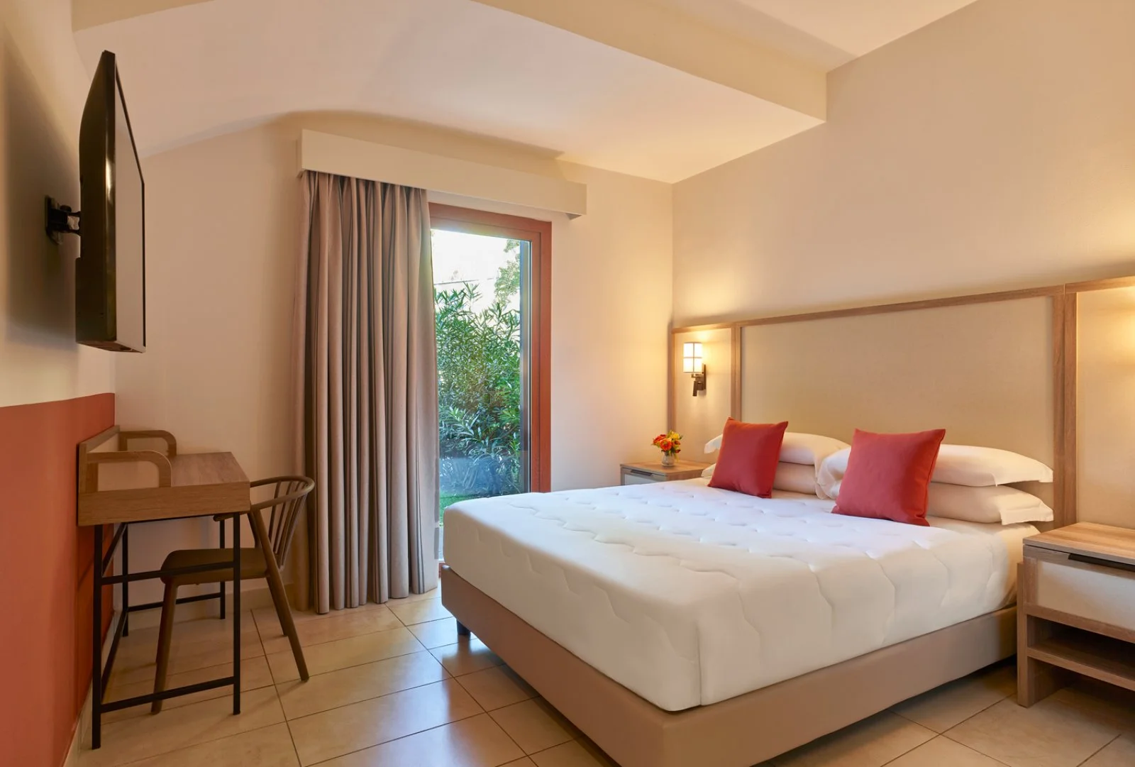 297, rinnovate nel 2024, dispongono di servizi con asciugacapelli, aria condizionata, TV, minifrigo, Wi-Fi, cassetta di sicurezza. A pagamento: minibar. Le classic, fino a 2 persone, sono suddivise tra classic ground floor al piano terra, classic al 1° piano senza balconcino e classic balcony al 1° o 2° piano con balconcino. Le superior ground floor, fino 3 persone, sono al piano terra e dispongono di 1 letto matrimoniale e 1 divano letto; le superior quadruple ground floor, minimo/massimo 4 persone (culla non disponibile), sono nella zona più centrale del resort, al piano terra, con 3° e 4° letto in divano letto estraibile. Le suite, da 32 a 35 m2 composte da doppio ambiente con letto matrimoniale nella zona notte e divano letto matrimoniale o chaise-longue doppia nella zona living, sono suddivise tra suite balcony al 1° piano con balcone (fino a 2 adulti+2 bambini, culla non disponibile) e suite ground floor al piano terra (fino a 2 adulti+2 bambini, culla inclusa nei posti letto). Tutte le suite sono dotate anche di bollitore con tè e tisane, macchina caffè espresso, TV con canali a pagamento, 1 telo mare a persona (dai 3 anni) con cambio giornaliero. Sono inoltre disponibili classic comunicanti, classic dog room con giardino recintato dotato di cuccia e scodella.