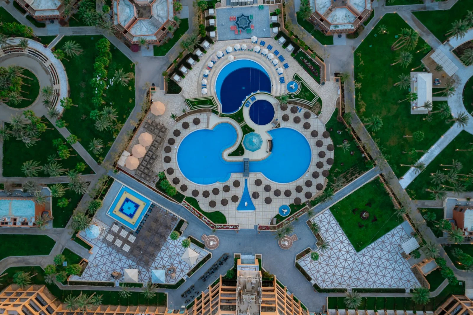 4 piscine esterne, di cui una relax riscaldata in inverno, una con attività e due per bambini, con ombrelloni, lettini e teli mare a disposizione. Grande parco acquatico (26.000m²) con 36 attrazioni tra cui scivoli per adulti e bambini e piscina con onde artificiali. Area giochi per bambini e connessione wi-fi gratuita presso lobby, ristorante e piscina. A pagamento, servizio lavanderia e servizio medico (su richiesta), parrucchiere, negozio di souvenir, ATM, sala riunioni, biliardo, centro spa, massaggi. L’hotel organizza un programma internazionale di attività diurne e serali di intrattenimento più volte la settimana.