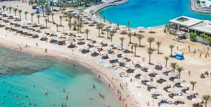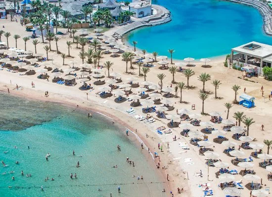 Hurghada, direttamente sulla spiaggia, a 10 km dall’aeroporto e dalla Promenade, 17 da Downtown.