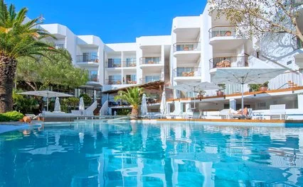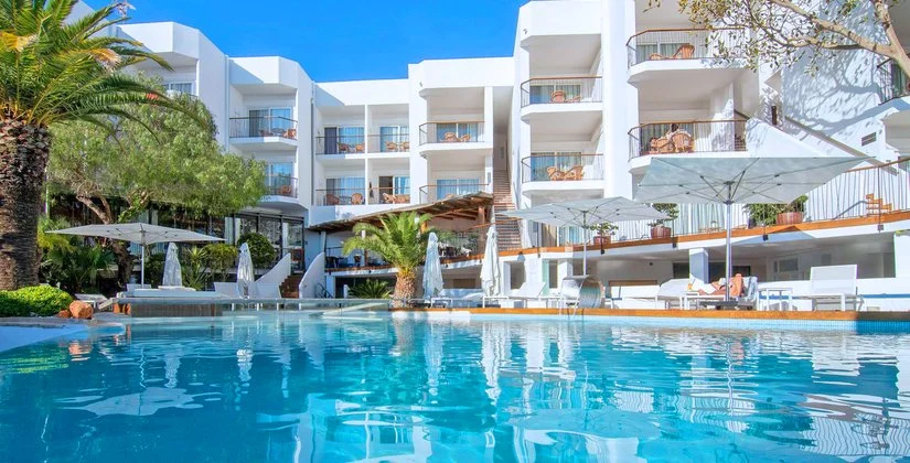 È situato nel centro di Es Pujols, la località più animata dell’isola, a circa 300 m dalla spiaggia sabbiosa. Dista 4 km circa dal porto di La Savina e 2,5 km dalle spiagge di Llevant e Ses Illetes. Dispone di 2 piscine, di cui una per bambini. Uso gratuito di teli mare, lettini e ombrelloni solo in piscina.