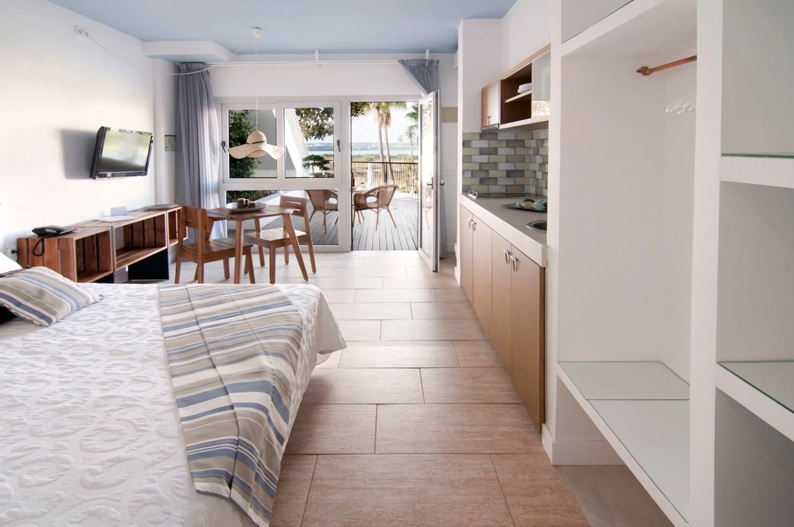 In totale 49 unità completamente rinnovate: sono disponibili studio monolocali (max 2 adulti), studio superior (max 3 adulti) e appartamenti con 1 camera da letto (max 4 adulti). Sono tutti arredati con gusto moderno e dispongono di servizi privati, asciugacapelli, angolo cottura accessoriato, aria condizionata, connessione Wi-Fi, TV satellitare, cassetta di sicurezza e balcone o terrazzo. La sistemazione della 3a/4a persona è prevista in divano letto. Il servizio di pulizia è giornaliero, mentre il cambio biancheria settimanale.