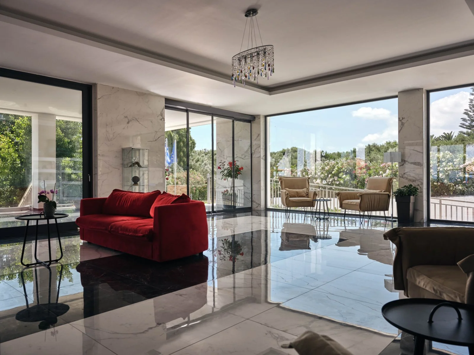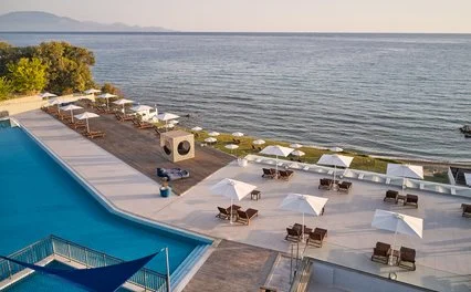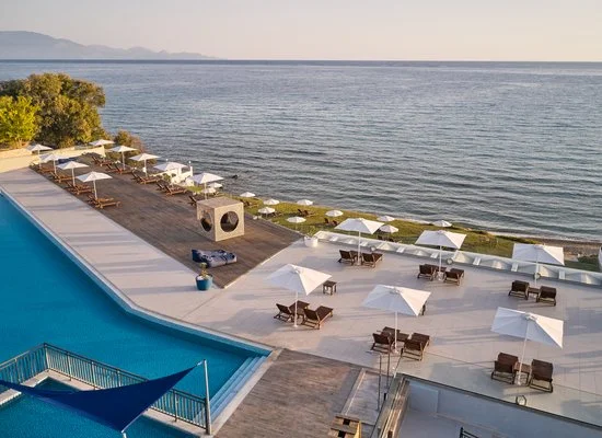 Situato in posizione panoramica, dista circa 10 km dall’animata Zante città e 11 km dall’aeroporto. Si compone di 6 edifici a 2 piani dalle linee geometriche e contemporanee, dipinti in un bianco candido che spicca in mezzo ai giardini verdi e curati che circondano l’hotel.