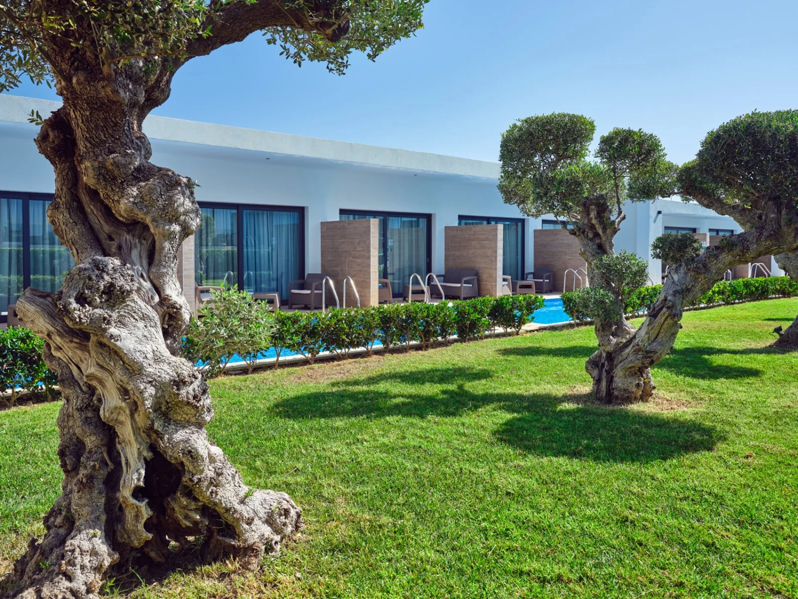 151, fresche e luminose, arredate in stile moderno e dotate dei maggiori comfort, tra cui asciugacapelli, aria condizionata, TV satellitare, cassetta di sicurezza, minifrigo, bollitore e set per tè e caffè, Wi-Fi, balcone o terrazzo. Le deluxe ospitano fino a 2 adulti e 1 bambino, mentre le superior con piscina condivisa fino a 3 adulti. Inoltre, junior suite vista piscina e junior suite swim-up, più spaziose, entrambe con occupazione massima fino a 4 adulti. A pagamento: culla.