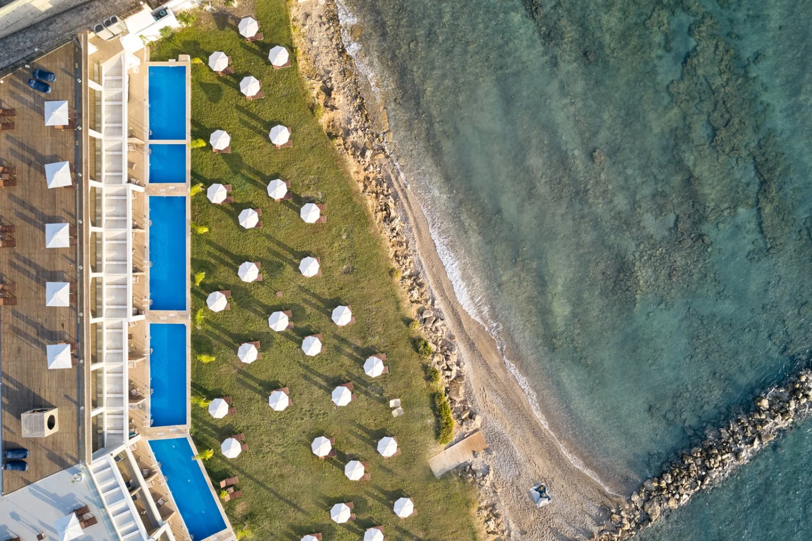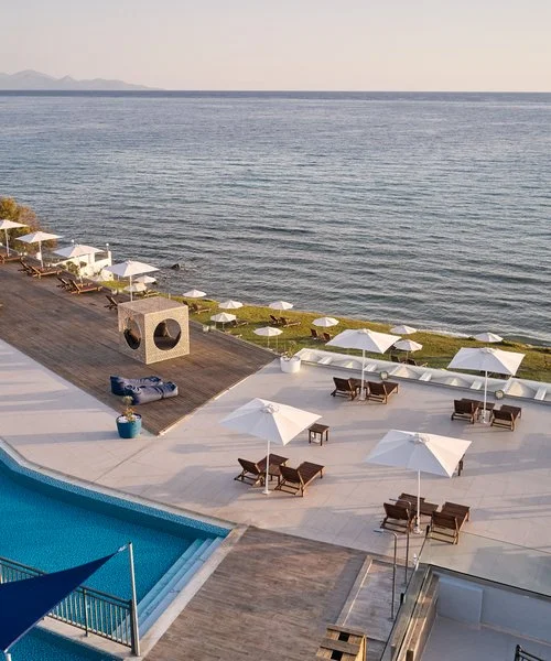 In posizione tranquilla e panoramica, direttamente affacciato su una graziosa spiaggetta di ciottoli. La scelta ideale per chi è alla ricerca di una vacanza rilassante, in un ambiente curato, confortevole e di design.