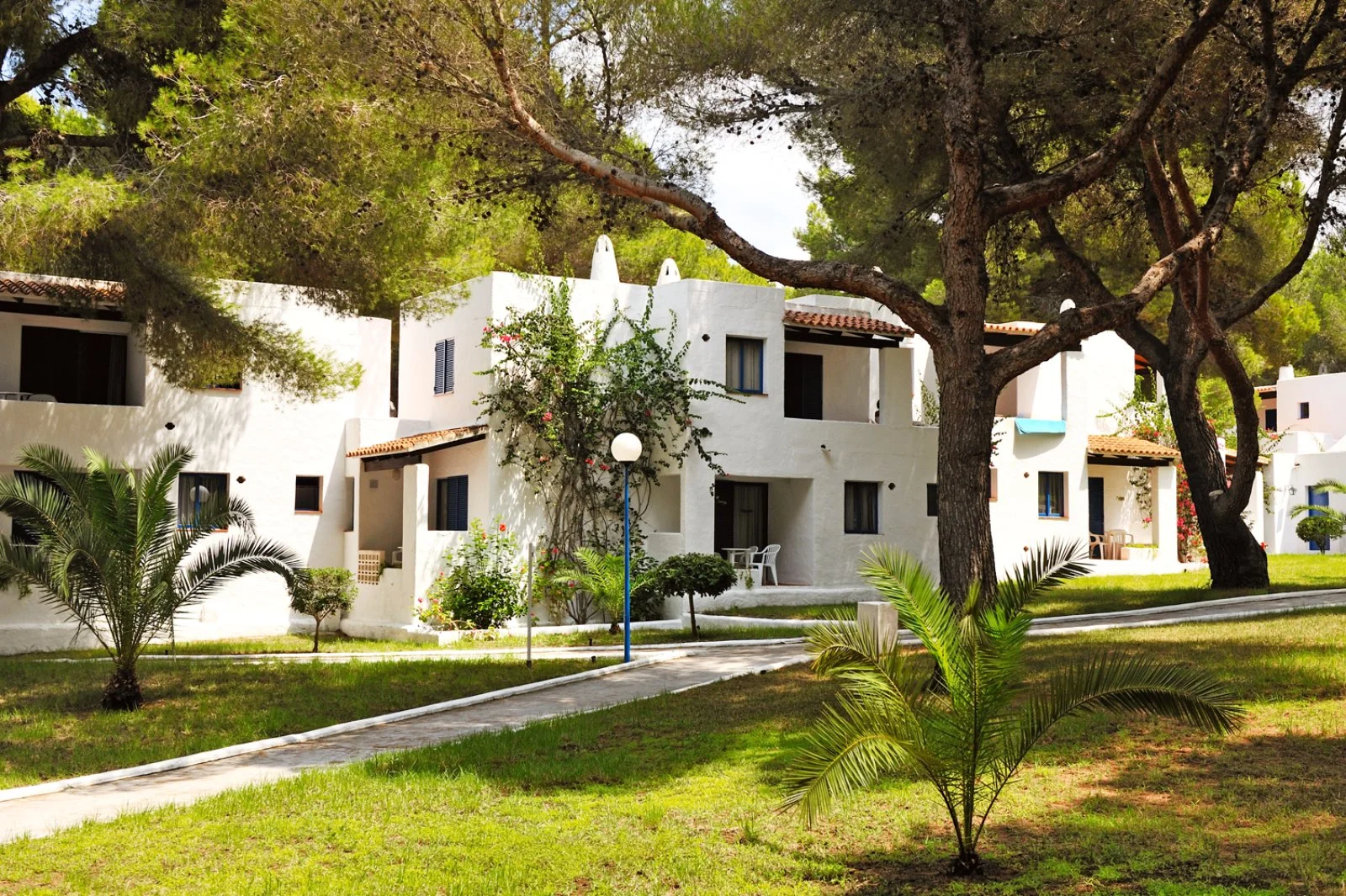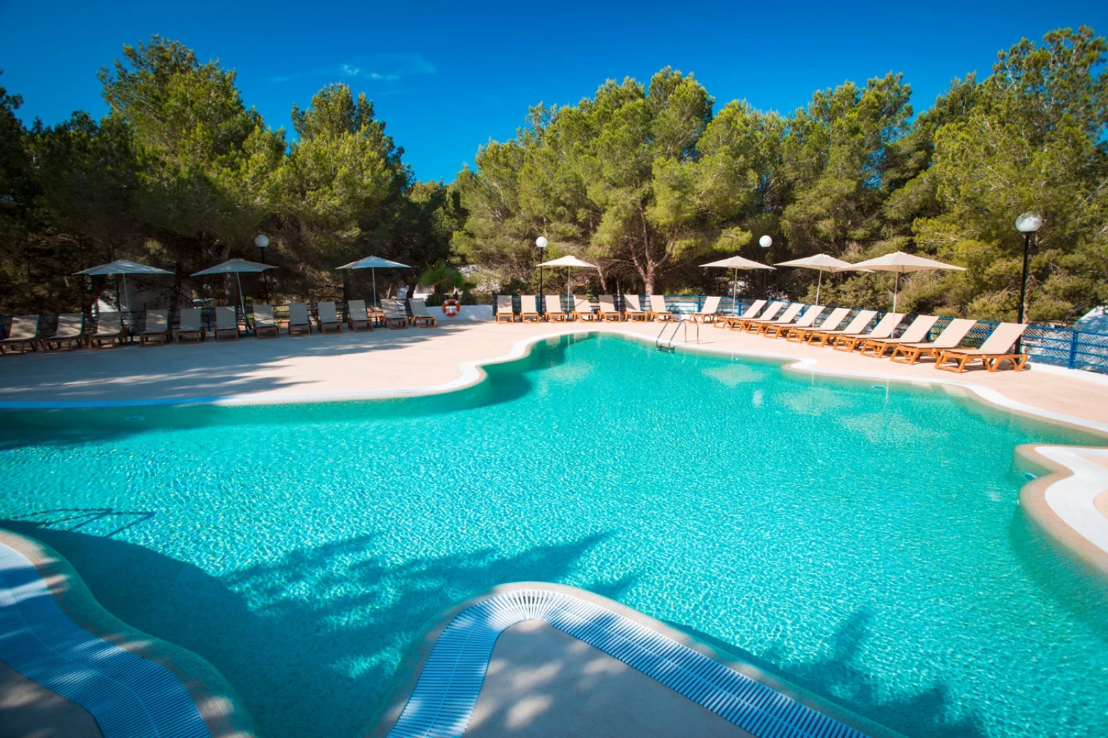 A Playa Mitjorn, dista 10 km da Es Pujols e 15 km da La Savina, porto di attracco dei traghetti. Il resort è immerso nel verde della rigogliosa pineta mediterranea che lo circonda. Dalla reception si snodano i vialetti che scendono verso la piscina e la spiaggia e ai lati dei quali si trovano i villini a due piani che ospitano le camere.
