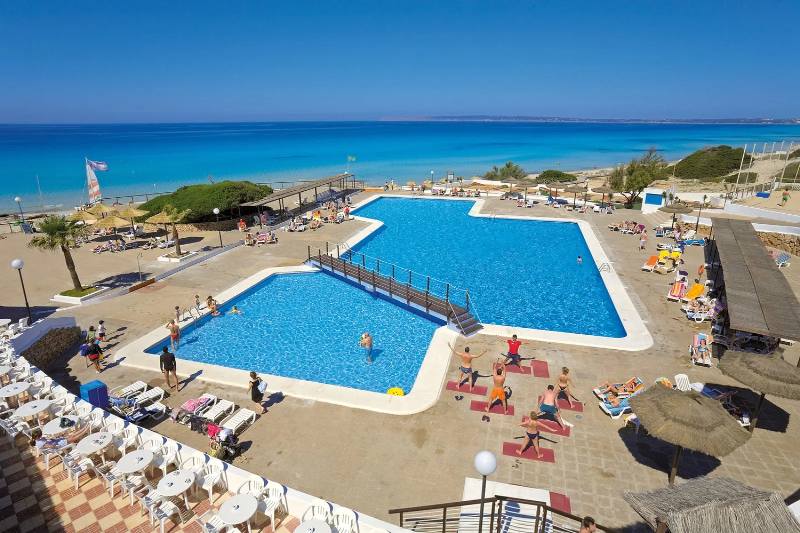 La spiaggia di Playa Mitjorn, di sabbia alternata a rocce, è lunga quasi 6 km, un vero paradiso per gli amanti del mare e delle passeggiate sul bagnasciuga. Il resort dispone di 2 piscine per adulti di cui una di acqua salata, zona bambini nelle piscine. Ombrelloni e lettini gratuiti fino a esaurimento solo in piscina (teli mare non disponibili in hotel); per il divertimento dei bambini è presente uno splash pool park con piscina e giochi d’acqua.
