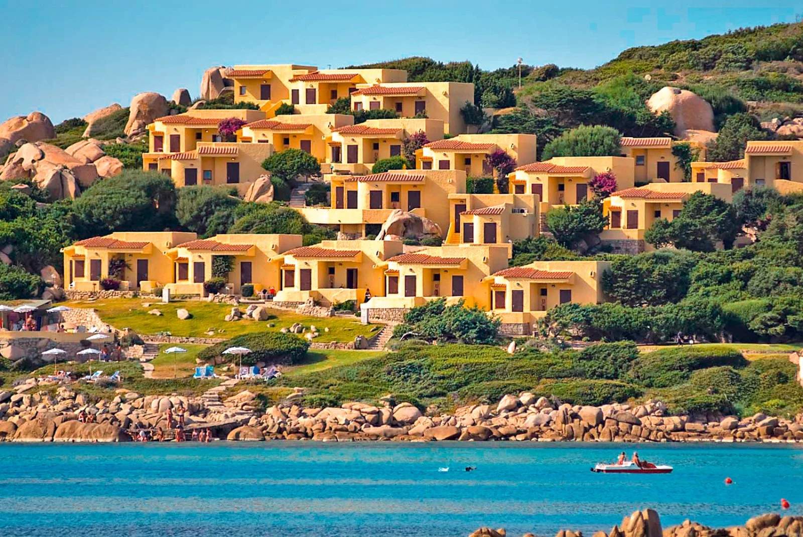 In posizione privilegiata, direttemente sul mare, e non lontanto dalle principali località d'interesse, sorge questo confortevole resort, con sistemazioni funzionali immerse nel verde dei ginepri e del mirto della Baia di Santa Reparata.