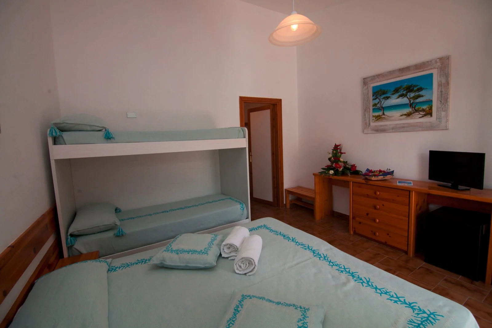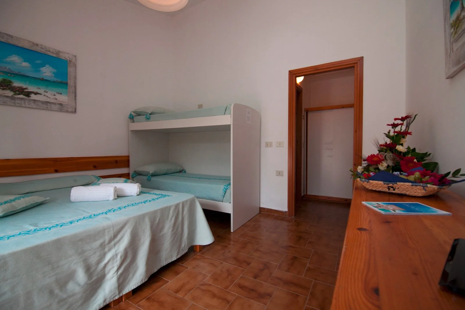 62, tutte rinnovate, con servizi privati, aria condizionata autonoma, tv, cassaforte, minifrigo, asciugacapelli, servizi e telefono e dehors privato e attrezzato. Si dividono in camere standard, singole, doppie, triple e quadruple (con letto a castello) e, con supplemento, camere family, da 3 a 5 posti letto, composte da due camere distinte con unico bagno.