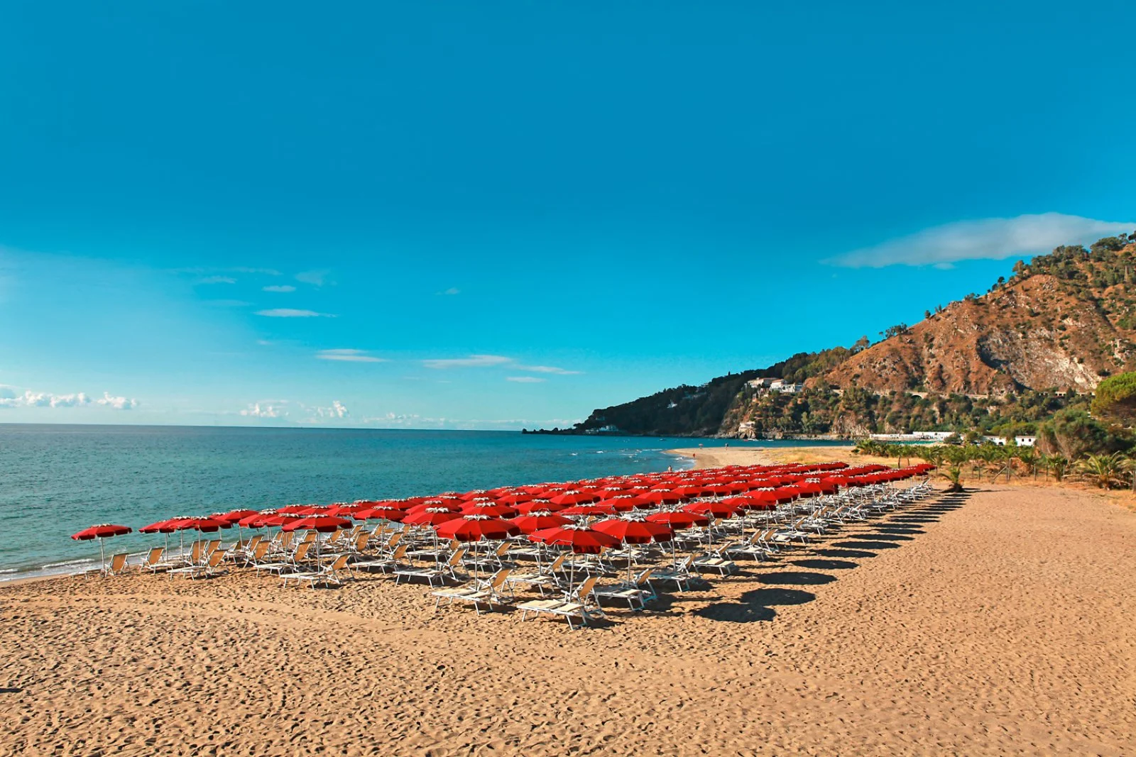 Spiaggia ampia di sabbia, privata e attrezzata con ombrelloni sdraio e lettini disponibili per ogni camera a partire dalla 2° fila (1° fila a pagamento in loco), raggiungibile attraverso un percorso pedonale privato all'interno del palmeto, privo di attraversamenti stradali.