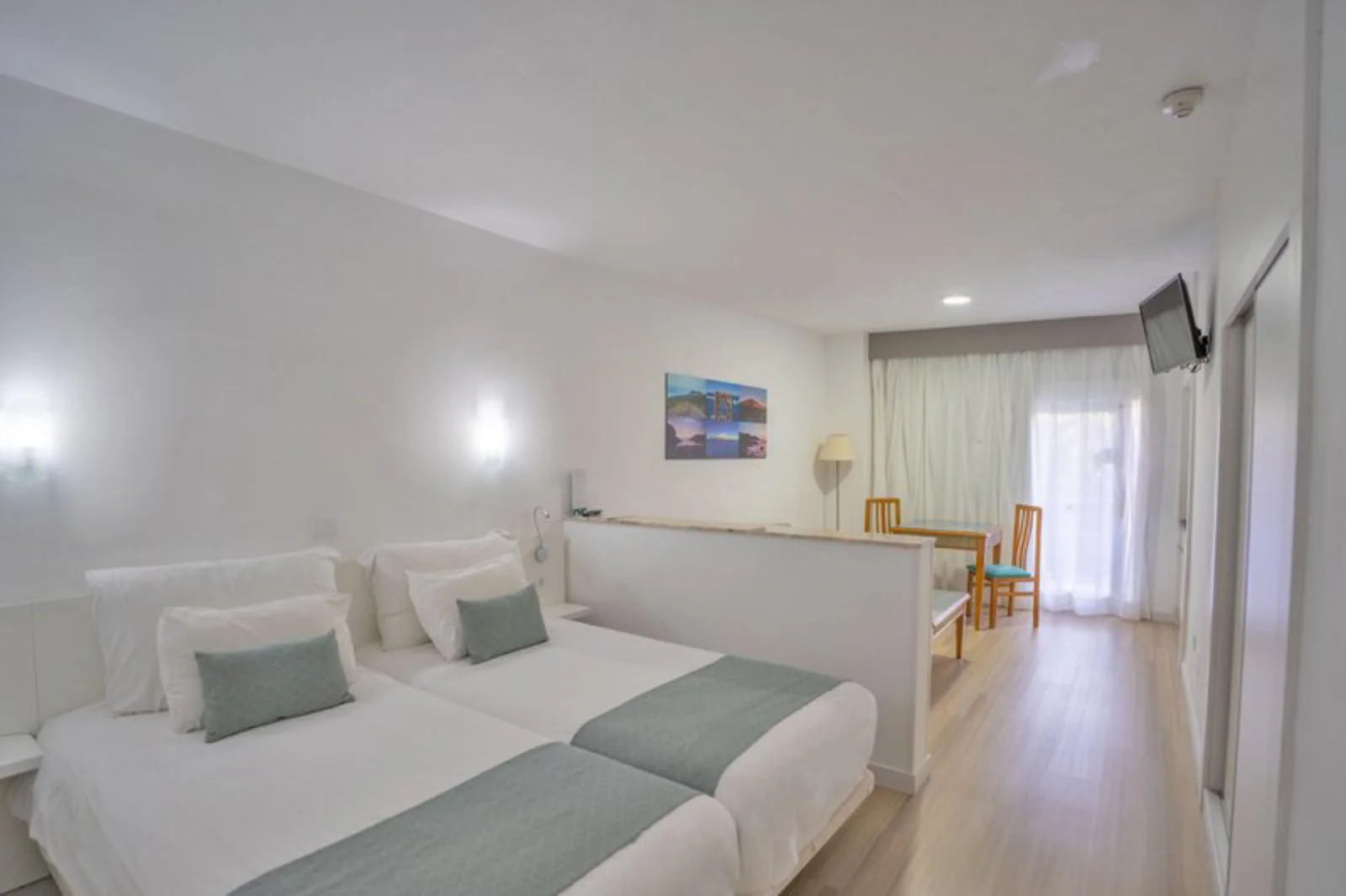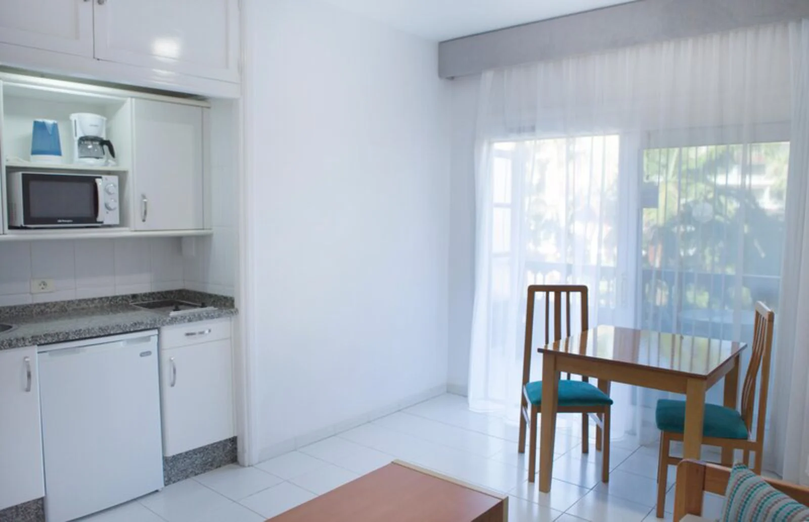 Gli appartamenti, dotati di angolo cottura e balcone, offrono comfort e libertà, rendendolo ideale per soggiorni lunghi o in famiglia. A breve distanza si trova il belvedere di La Paz, da cui si gode una