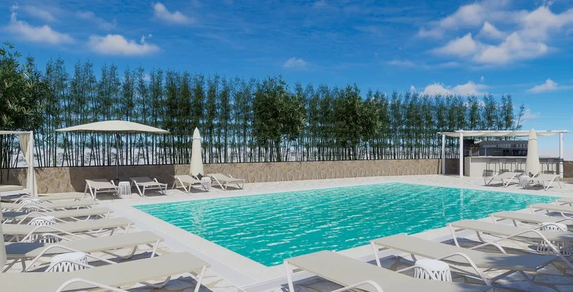 La bella spiaggia di Pessada, di sabbia e ciottoli, dista circa 1,5 km ed è attrezzata con ombrelloni e lettini (a pagamento). L’hotel dispone di una piscina principale con ombrelloni e lettini a disposizione degli ospiti gratuitamente. Teli mare disponibili in piscina.