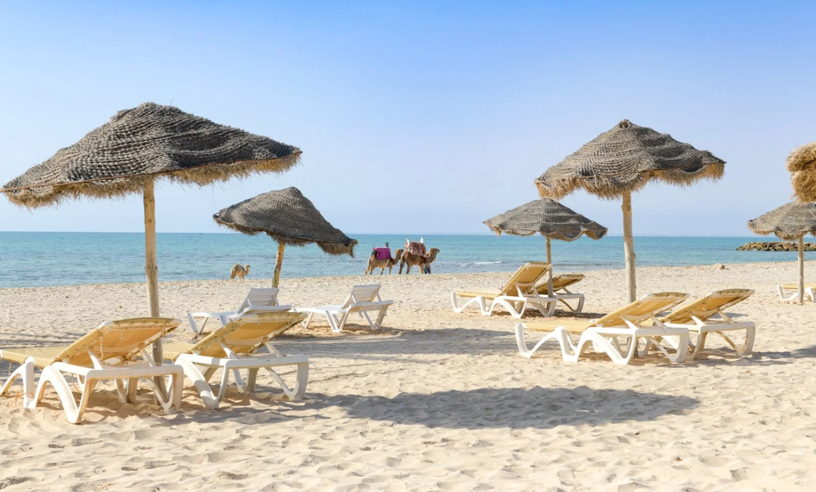 di sabbia chiara e fine, attrezzata con ombrelloni e lettini a disposizione dei clienti (teli mare disponibili con cauzione di 10 Tud).
