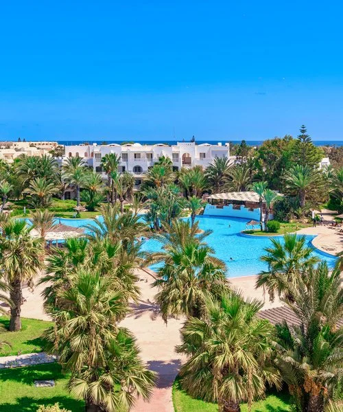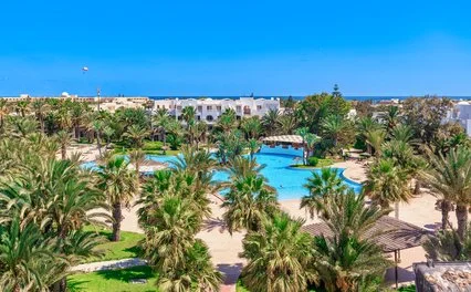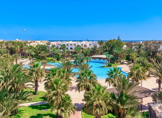 Un resort 4* situato nella zona turistica di Midoun, una delle località più rinomate di Djerba. Un hotel dallo stile moderno ed arabeggiante, che si fonde meravigliosamente con il paesaggio circostante. Qui si vive una magica atmosfera tunisina tra viottoli immersi nel verde e profumo di mare.