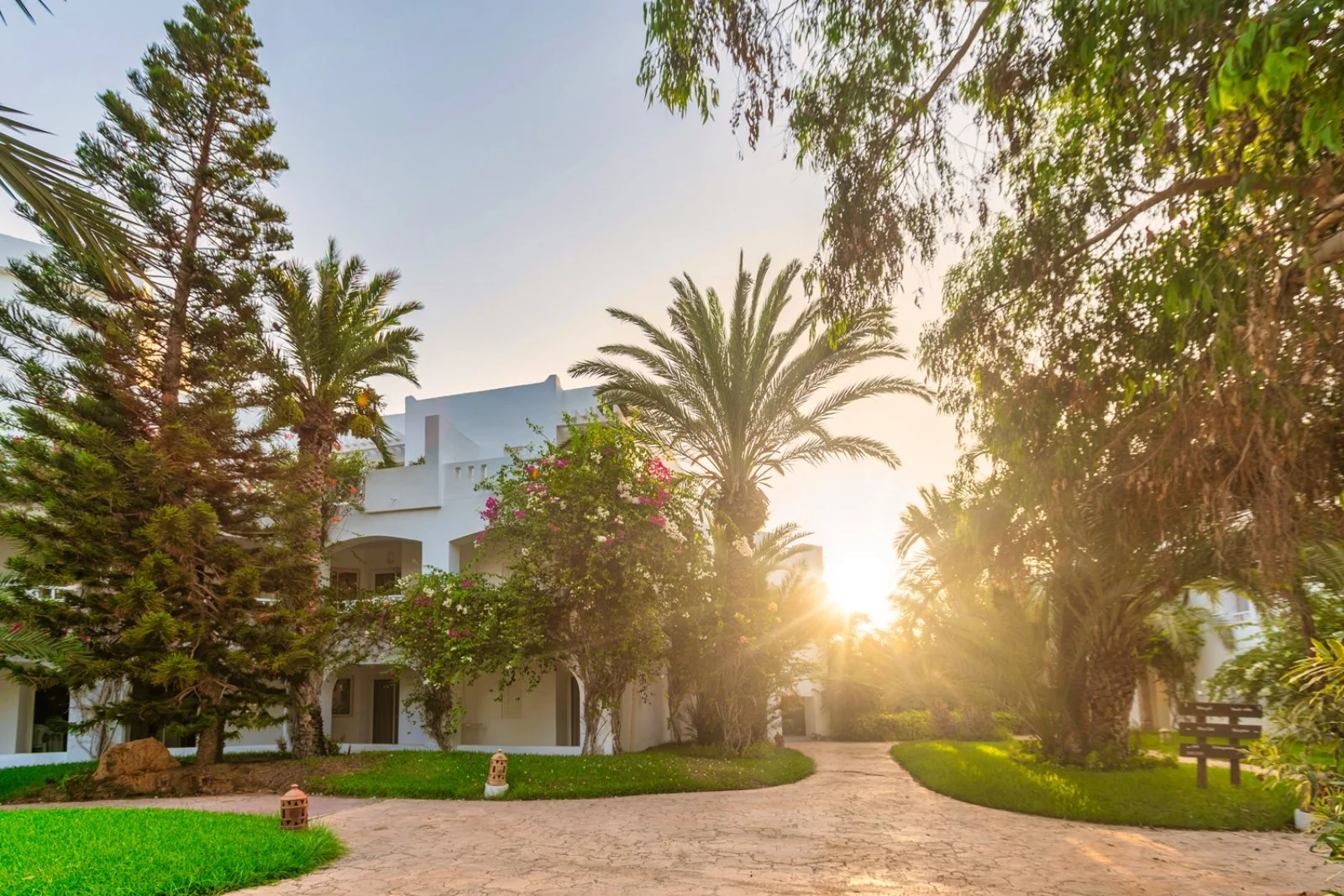 stile moderno ed arabeggiante, che si fonde meravigliosamente con il paesaggio circostante. Qui si vive una magica atmosfera tunisina tra viottoli immersi nel verde e