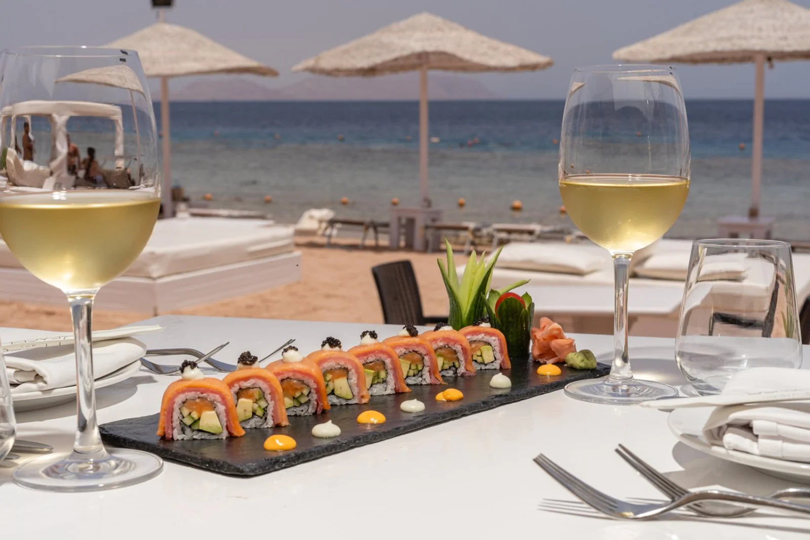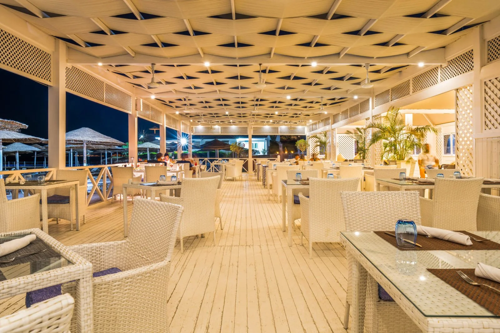 una cena al The Beach, il locale più conosciuto del Domina Coral Bay on una cena spettacolo favolosa, insieme ad un massaggio (30 min) e