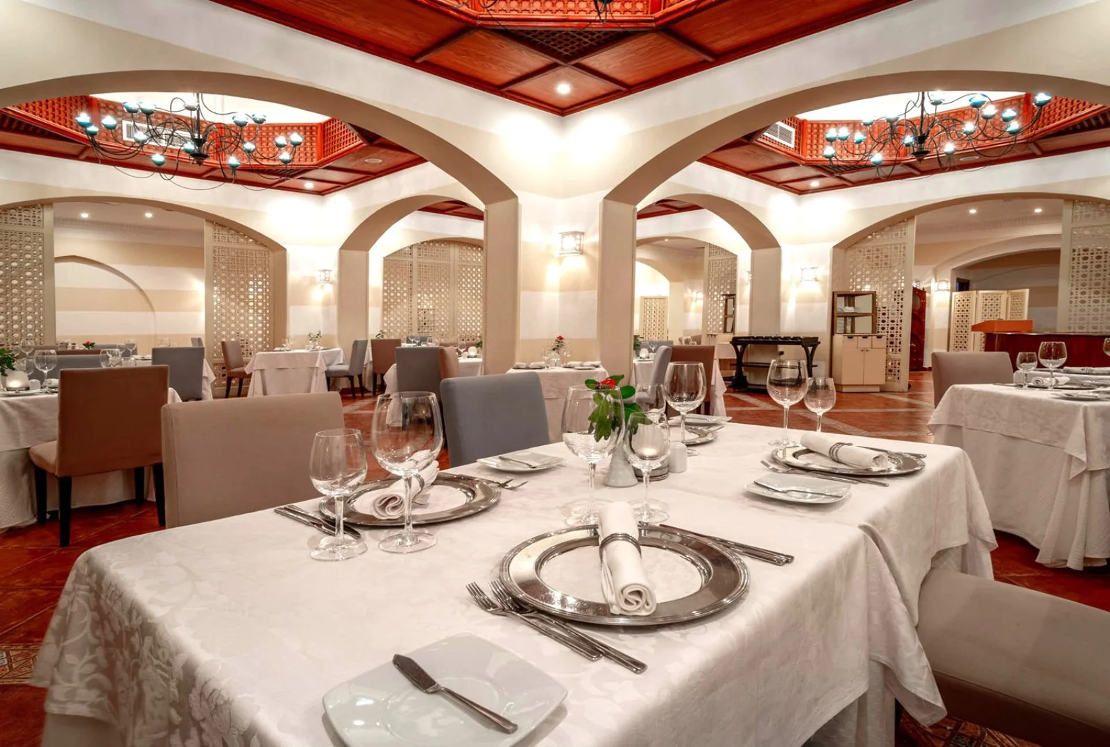 12 ristoranti. 3 a buffet, Il Giardino, Coral e Spices. 8 ristoranti à la carte (di cui 2 a pagamento), Plaisirs dall’ambiente raffinato con cucina italiana, Steak House, con specialità grill, La Piazzetta con specialità di pasta e pizza, The Beach sulla spiaggia, Alibaba con forno a legna per la pizza, Blue Lake sul Lago Salato, Prestige Beach Restaurant e La Cava, con ricette italiane. 13 bar fra cui 10 compresi per i clienti Eden Viaggi, il Prestige Beach bar, il Prestige Lounge bar, il King's Lake bar, il Main Beach bar, il Main Pool Bar, il 56 Pool Bar, il Sultan Beach bar, il Bellavista Pool bar, l'Harem Pool bar, il Pergola bar.