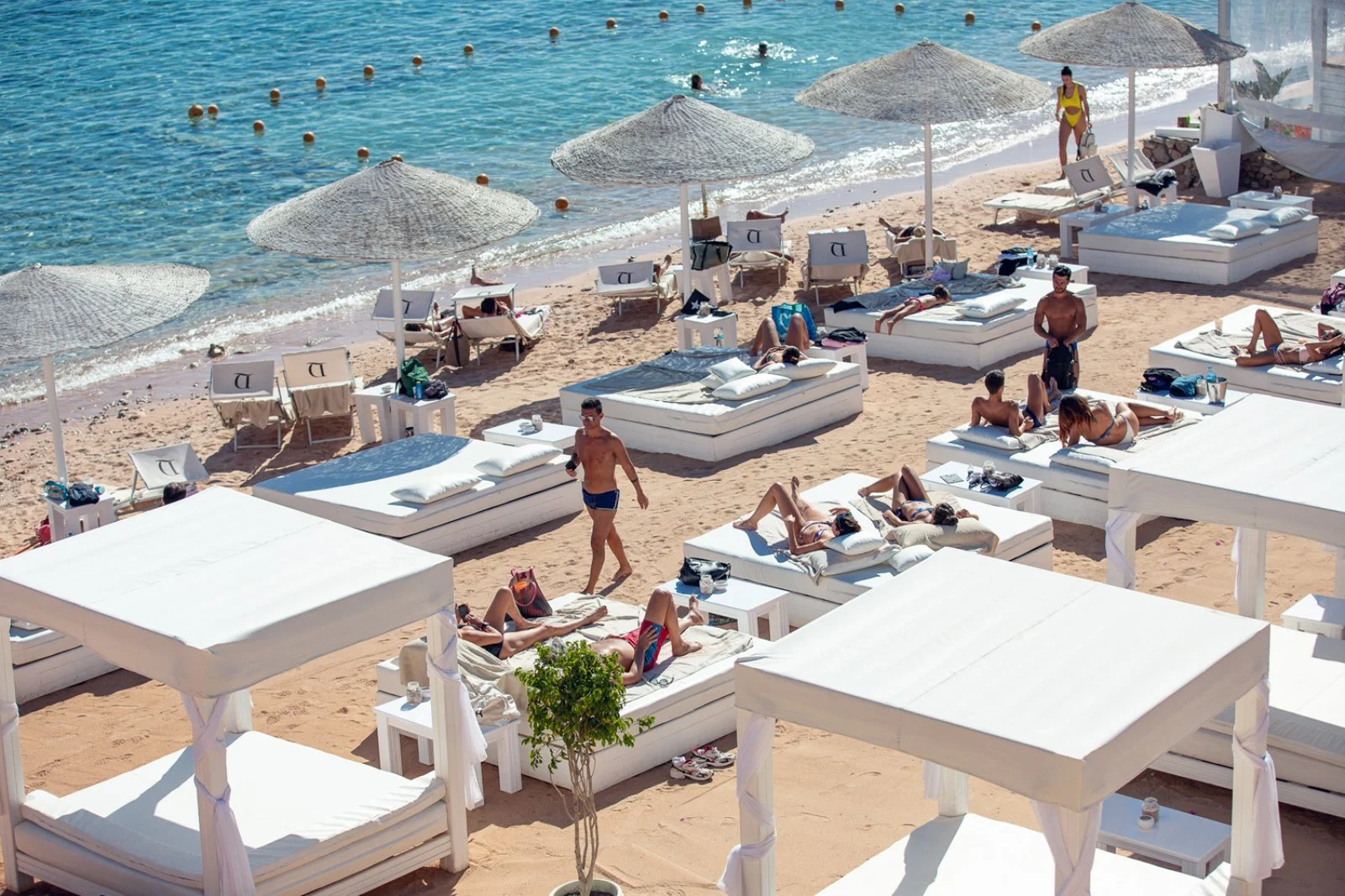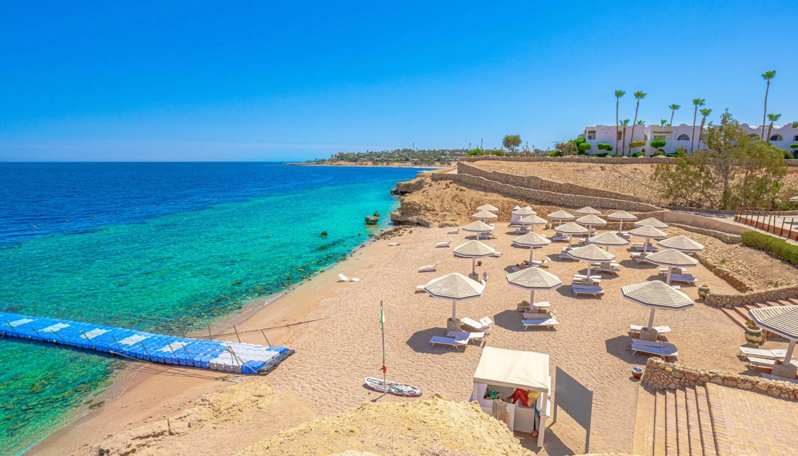i clienti Eden della formula prestige hanno accesso esclusivo alla spiaggia riservata all’omonima sezione. Si tratta di uno spazio d’eccellenza nella già meravigliosa spiaggia del domina coral bay a cui comunque i clienti potranno accedere liberamente. La struttura offre infatti ampie spiagge sabbiose con ombrelloni, lettini e teli mare a disposizione. L’accesso al mare e alla barriera corallina è garantito da attrezzati pontili con area solarium all’interno dei quali sono ricavate anche delle piccole piscine galleggianti.
