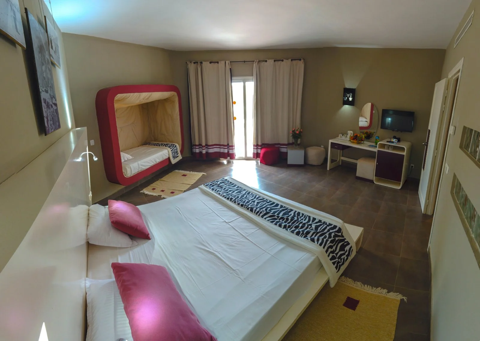 ricca formula tutto incluso, aperta anche fino a tarda serata. L’hotel è una celebrazione dell’ospitalità tipica del paese e la sua architettura ricorda le antiche costruzioni berbere e i loro granai. Gli edifici che ospitano camere e servizi comuni sono situati all’interno di un