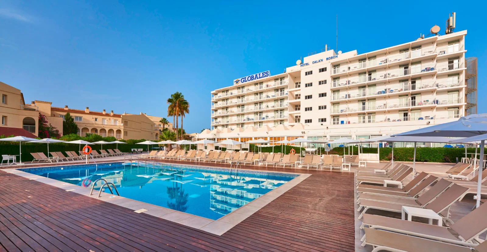 A soli 150 m dalla bella spiaggia sabbiosa di Cala’n Bosch facilmente raggiungibile anche dalla zona solarium. Dispone di due piscine di cui una per bambini con scivoli e giochi d'acqua. Uso gratuito di lettini e ombrelloni solo in piscina. Teli mare disponibili con cauzione (eventuali cambi a pagamento).