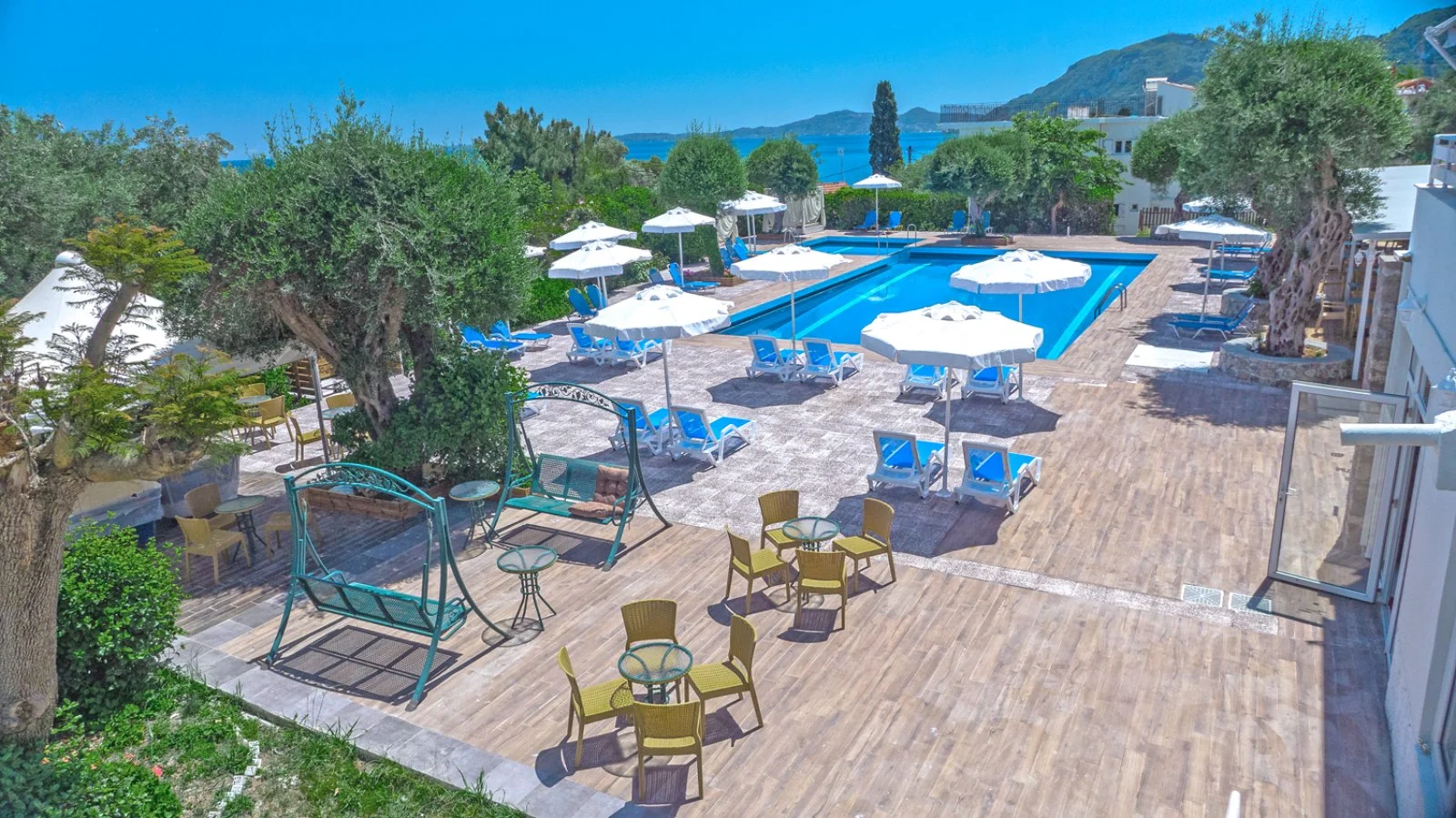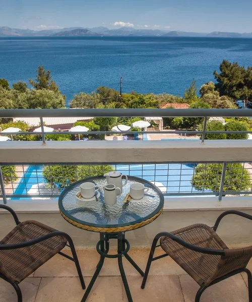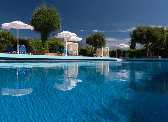 in seconda linea rispetto alla spiaggia, ma con vista sul mare, si tratta di una proposta un po' datata ma funzionale per chi voglia godersi il meritato riposo. La struttura si trova, infatti, a Perama, tranquilla località lungo la costa a pochi chilometri dall’aeroporto e dal capoluogo dell’isola, nonché da Benitses e dalla sua bella spiaggia, molto conosciuta e apprezzata, collegata con comoda navetta gratuita.