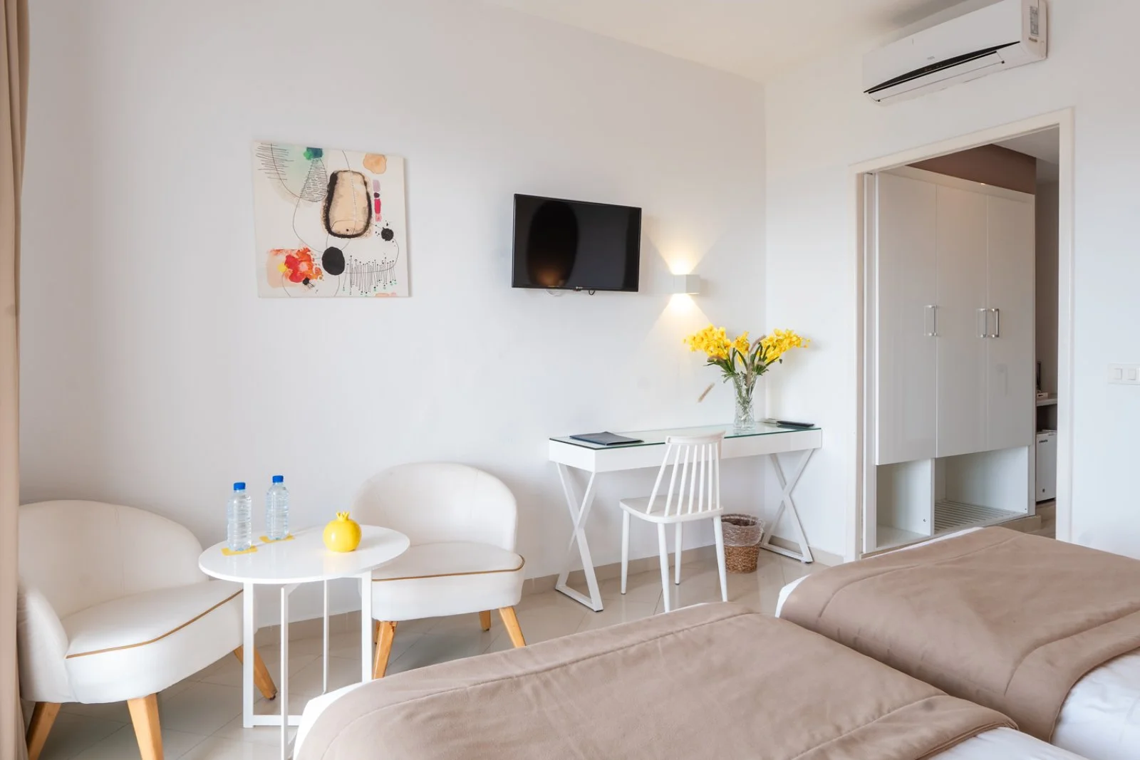 280 camere (24 m² max 4 adulti) con servizi privati, aria condizionata, asciugacapelli, telefono, TV satellitare, minibar, connessione Wi-Fi gratuita, cassetta di sicurezza e balcone o terrazzo. Disponibili, con supplemento, camere vista mare e bungalow (26 m²) standard e bungalow quadrupli (35 m²).
