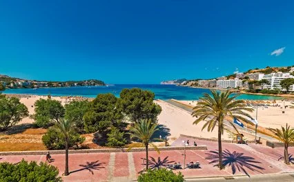 Sorge sul lungomare dell’ampia spiaggia di Santa Ponsa, a circa 50 m dal centro della località omonima. Il grazioso ed esclusivo porticciolo turistico di Portals Nous si trova a circa 9 km. Dista inoltre circa 30 km dall’aeroporto e 21 km da Palma città. Totalmente ristrutturato, si distingue per l’arredamento moderno e luminoso.