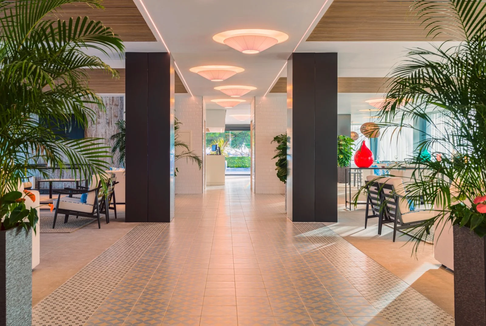 245 camere (max 2 adulti + 1 bambino) arredate in stile moderno ed elegante. Sono disponibili doppie basic (con affaccio sulle parti meno nobili della struttura), doppie vista strada, doppie vista piscina, superior vista mare laterale/piscina, superior vista mare e, su richiesta triple (max 3 adulti). Tutte dispongono di servizi privati, asciugacapelli, aria condizionata, telefono, TV satellitare, cassetta di sicurezza, connessione Wi-Fi e balcone. A pagamento: consumazioni minibar.