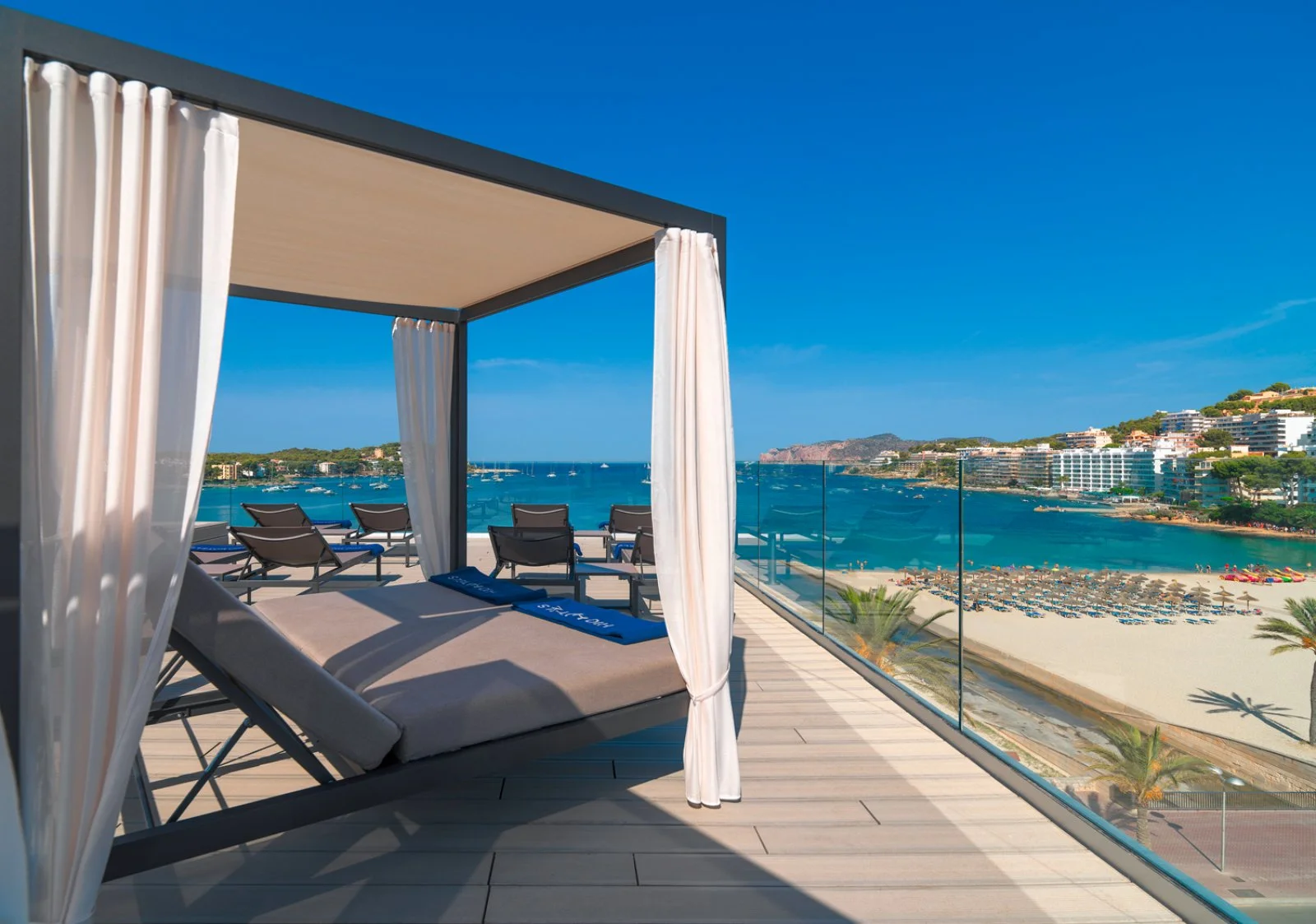Di fronte alla spiaggia sabbiosa di Santa Ponsa. Dispone di due piscine, di cui una situata al 5° piano dell’hotel con terrazza chill-out e riservata agli ospiti con minimo 16 anni. Utilizzo di ombrelloni, lettini e teli mare (questi ultimi con deposito) solo in piscina.
