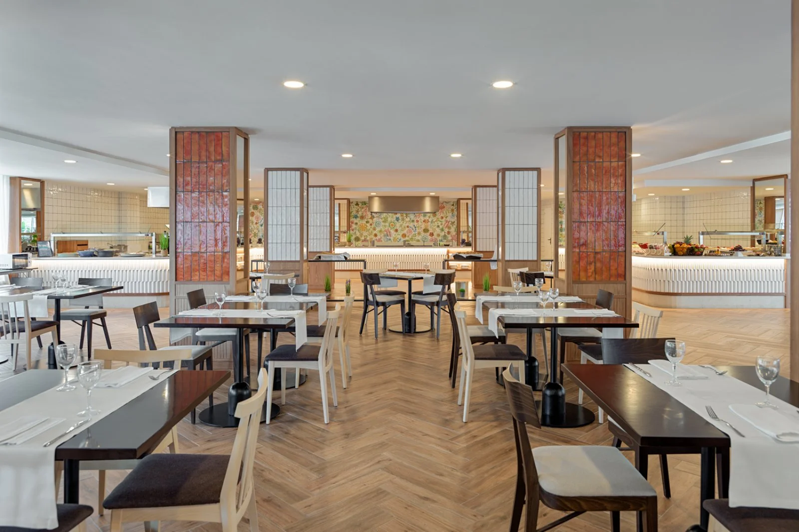 Ristorante con servizio a buffet con angolo show cooking, bar, snack bar. Il trattamento di mezza pensione con bevande prevede ½ l di acqua e ¼ l di vino per persona a pasto.
