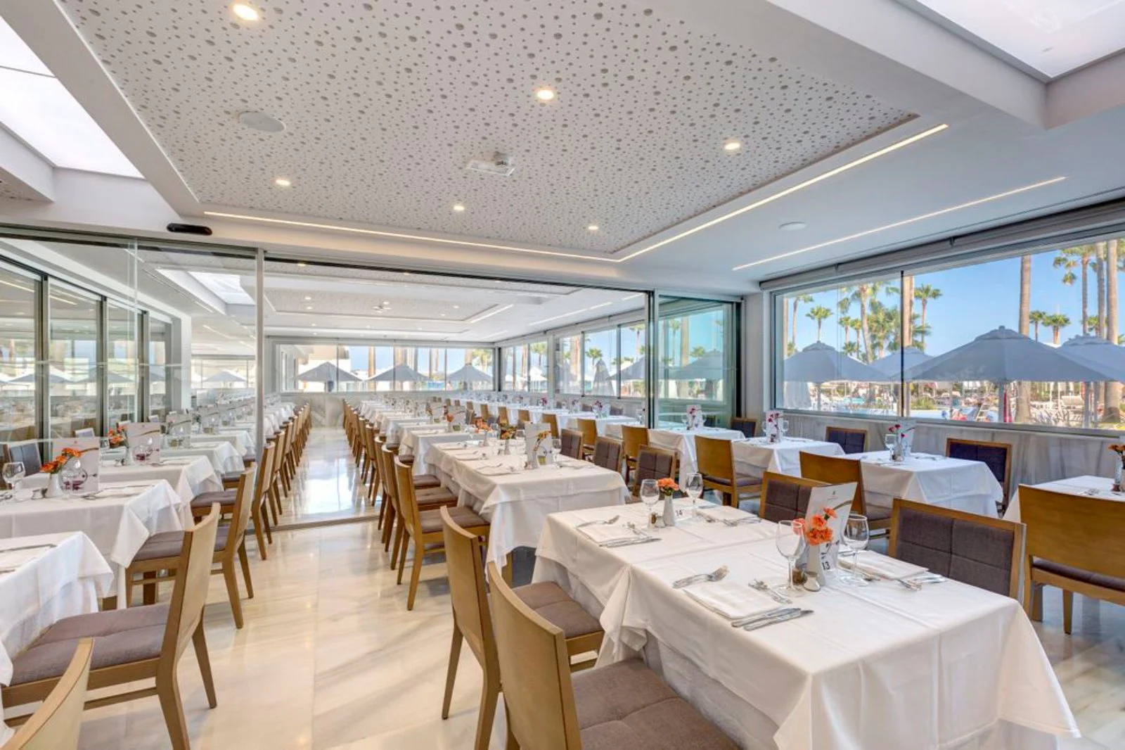 Ristorante con servizio a buffet e angolo show cooking. A pagamento: pizzeria aperta per pranzo. Il trattamento di mezza pensione prevede, oltre alla cena nel ristorante principale, la possibilità di cenare gratuitamente presso i ristoranti tematici, mediterraneo e asiatico, una volta a settimana (prenotazione alla reception, soggiorno minimo 7 notti).